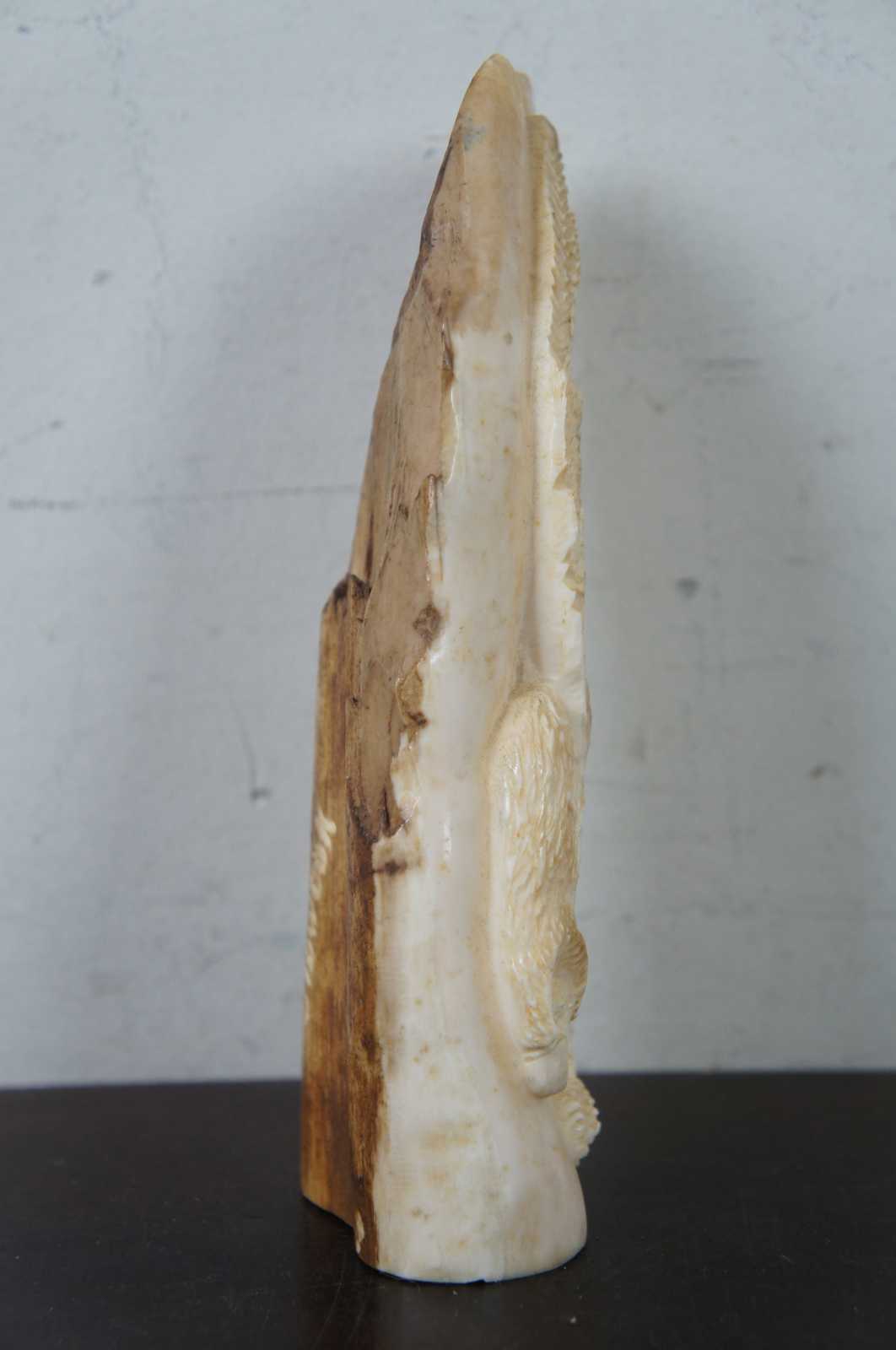 Antqiue Fossilized Bone Adze Tool Figural Carved Eagle Blade Sculpture