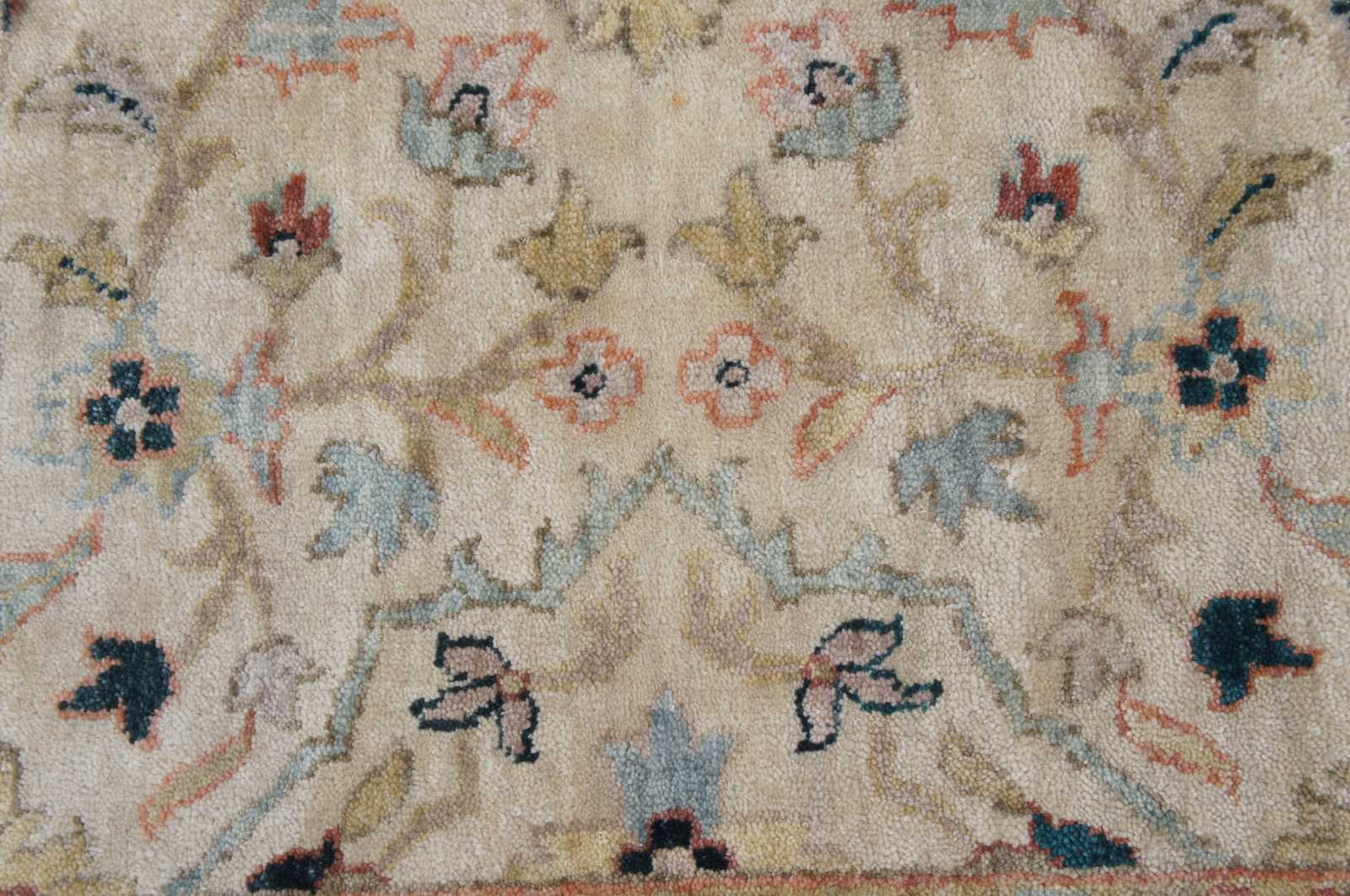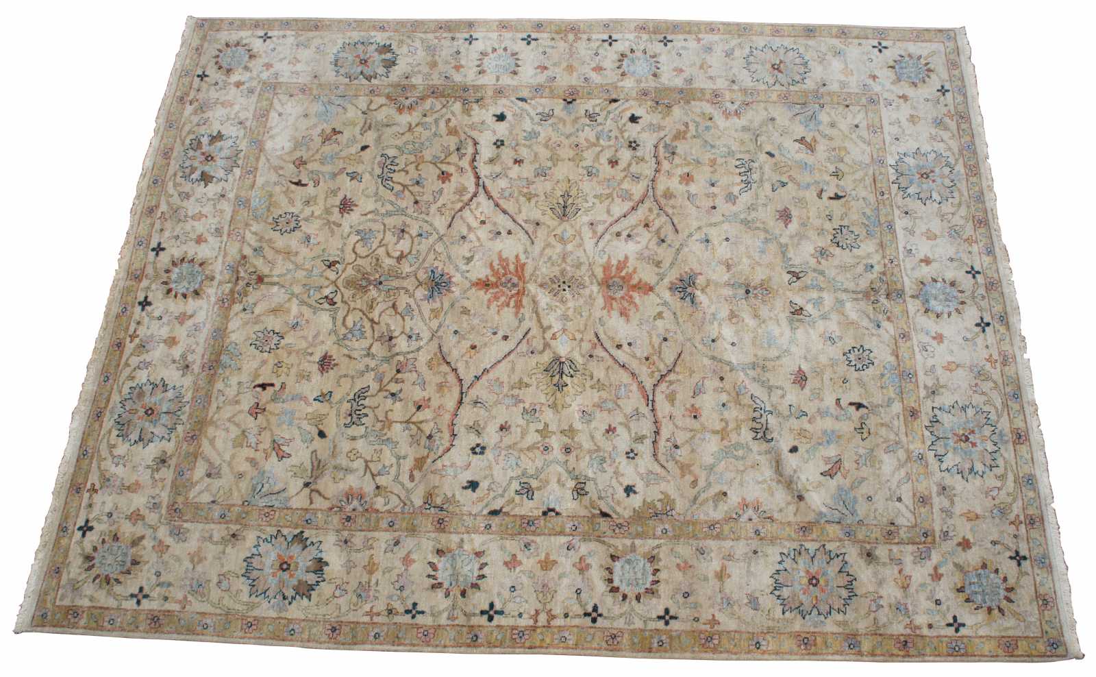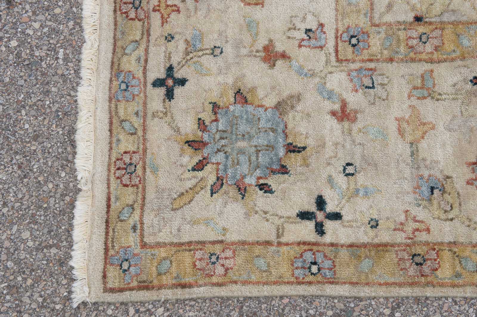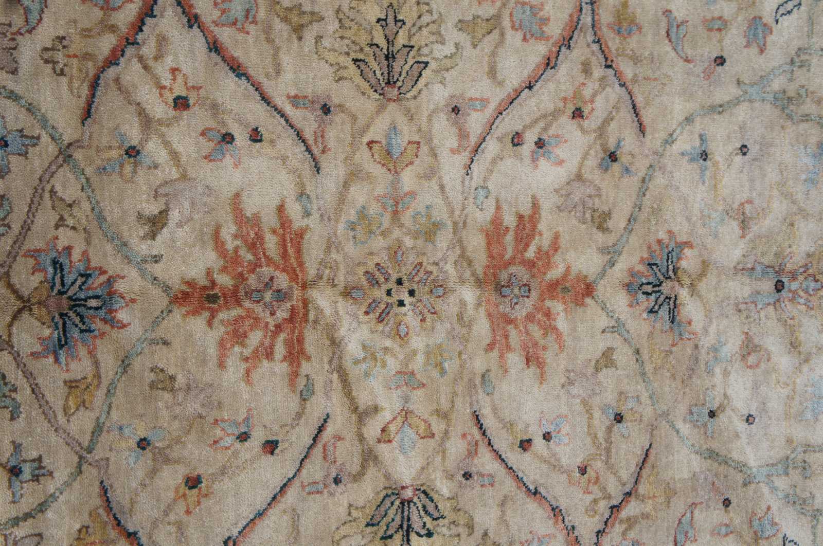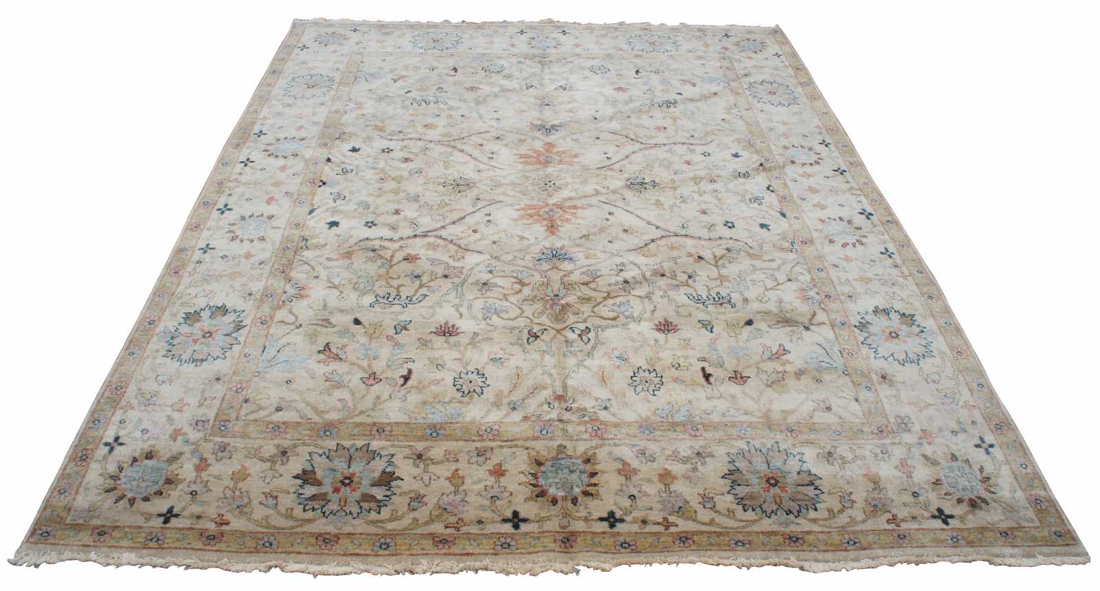 Vintage flroal all over area rug. Features beige / tan, reds / pinks, greens, blues.