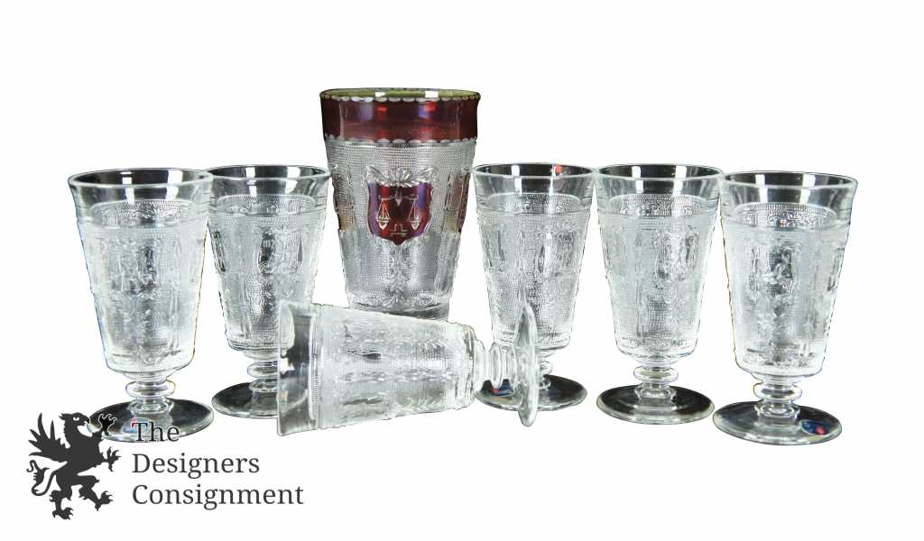 7 Heisey Footed Zodiac Juice Glasses #1590