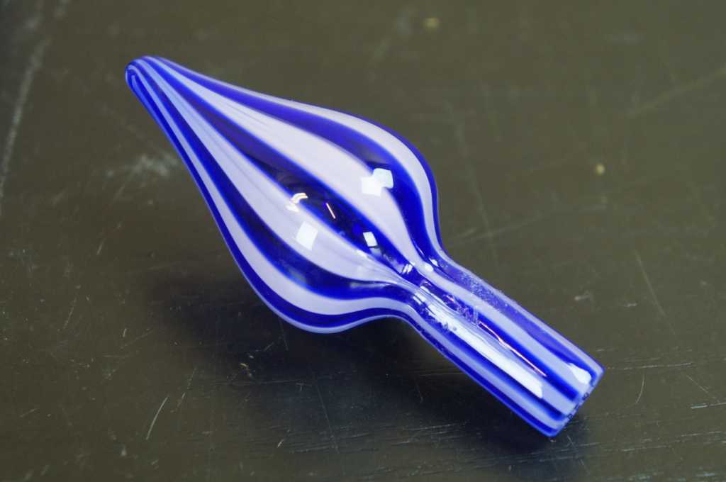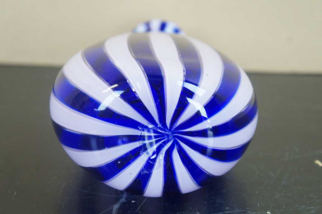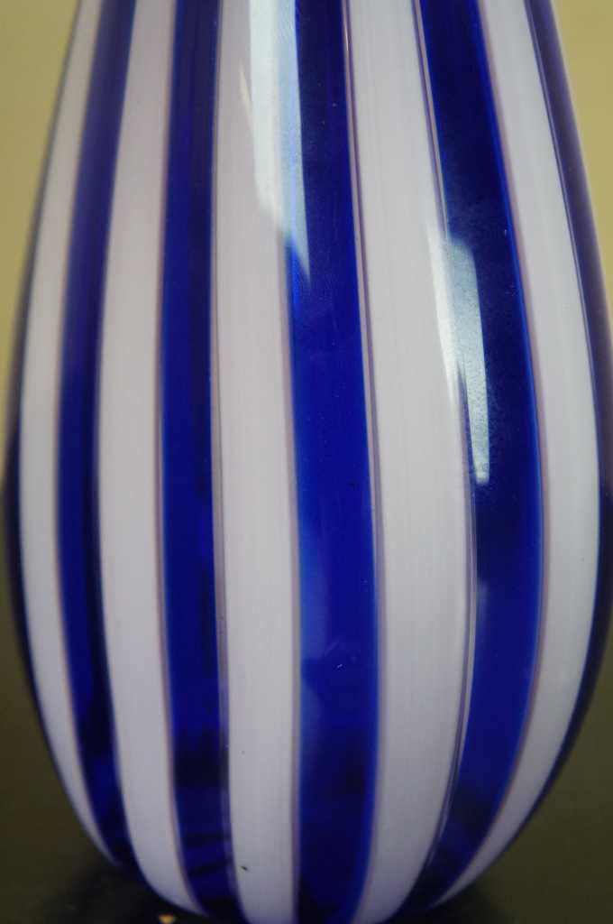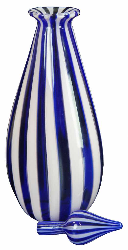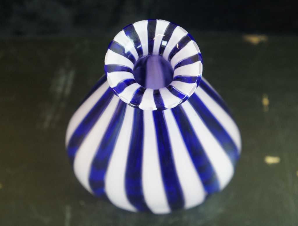 Vintage Hand Blown Cobalt Blue and White Candy Striped Art Glass Decanter