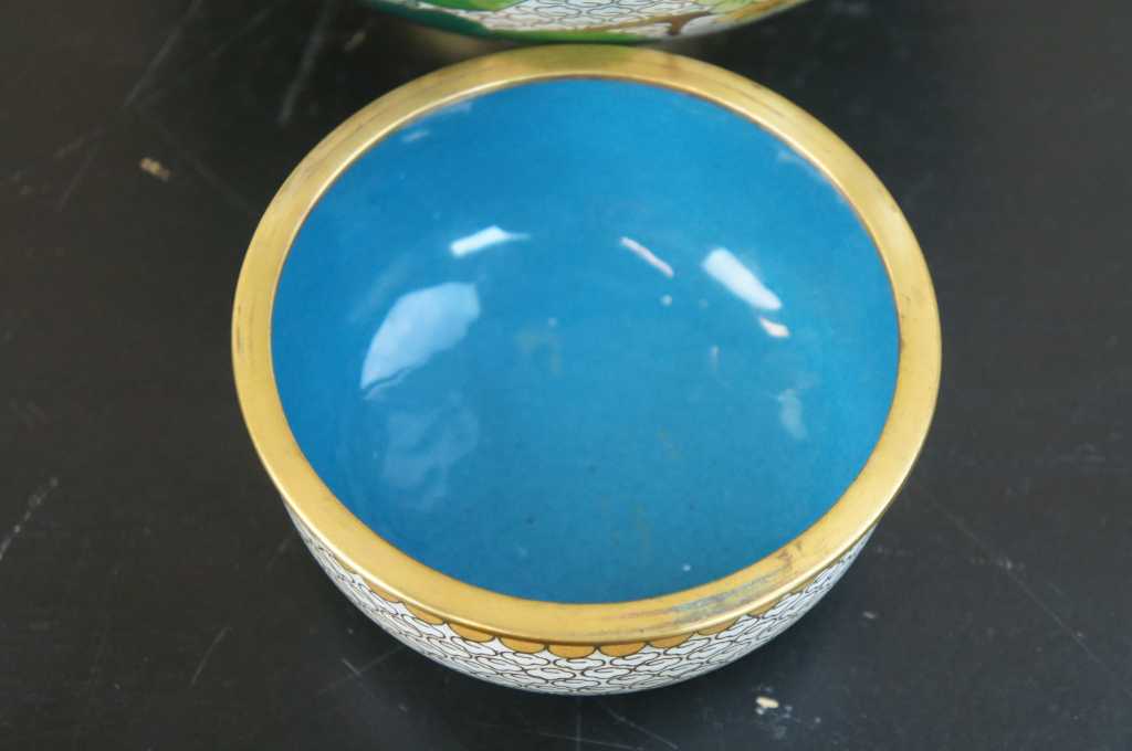 20th Century white/ivory enamel lidded ginger jar; features cherry blossoms, peonies, a butterfly on a sea of clouds.