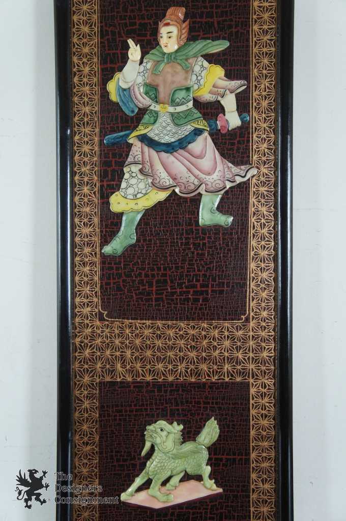 4 Vintage Chinese Warrior Wall Panels
