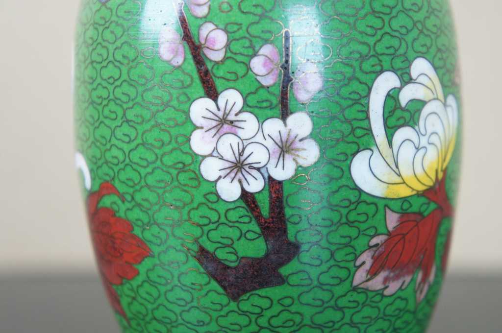Cloisonne Vase featuring a chrysanthemum, which is a symbol that represents longevity and rejuvenation in the Japanese culture.