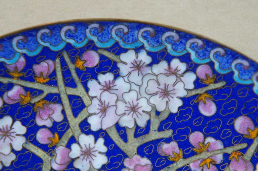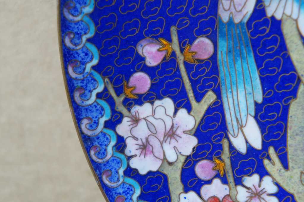 1991 Chinese Cloissone Plate Azure Winged Magpie Ching t’ai Lan Artists Workshop