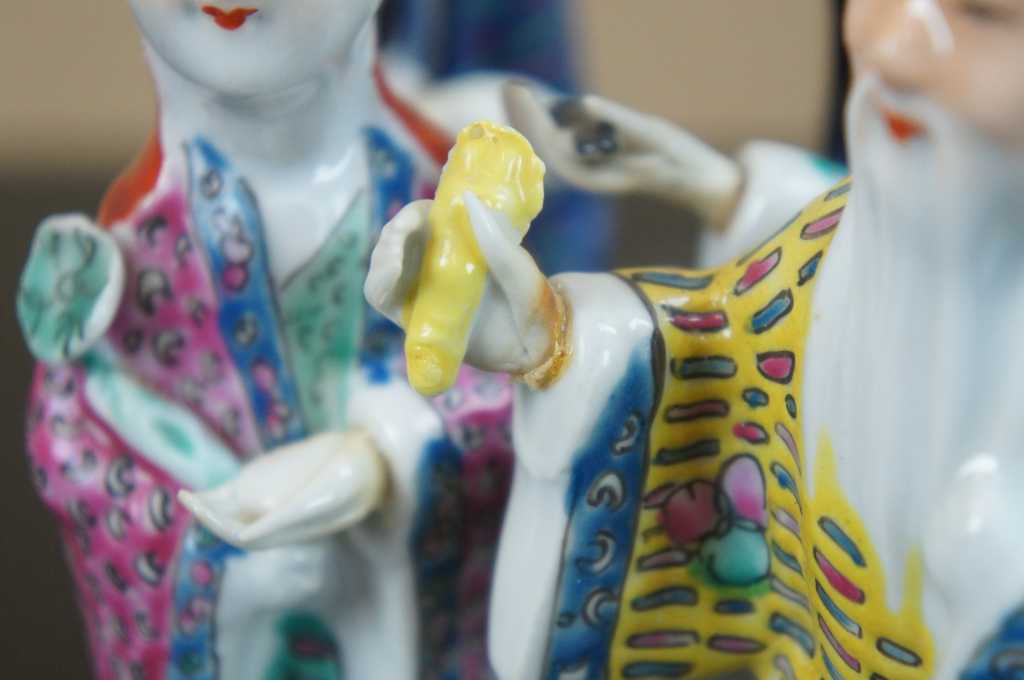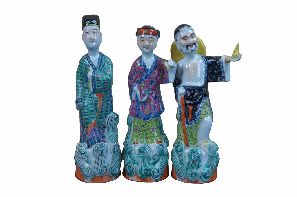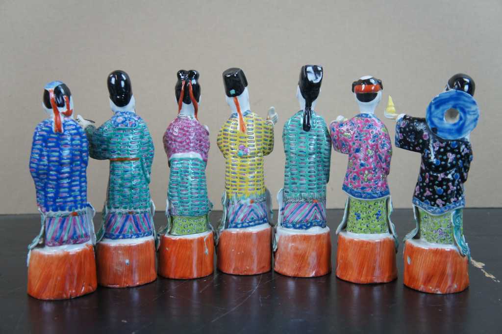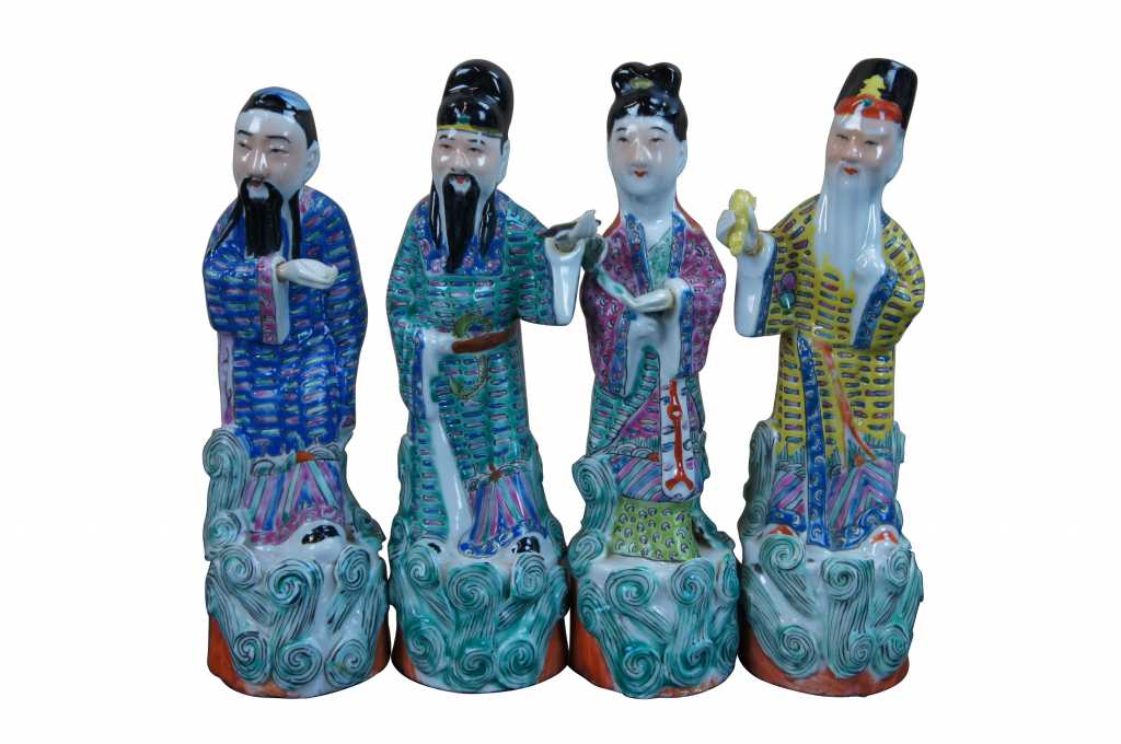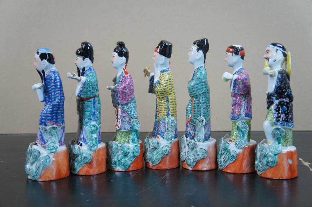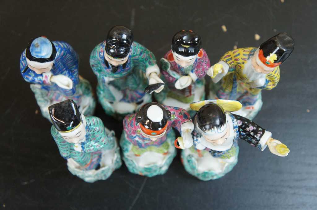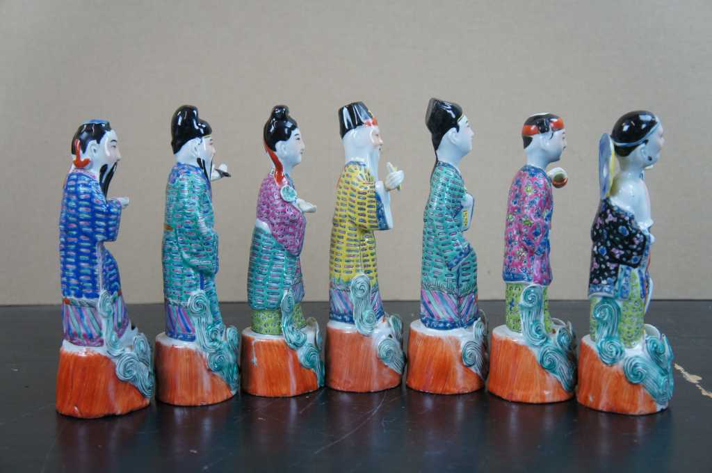 A beautiful set of 7 of the 8 Chinese Immortals gods. The immortals are a group of legendary xian in Chinese mythology. Each immortals power can be transferred to a vessel that can bestow life or destroy evil. Together they are the Covert Eight Immortals.