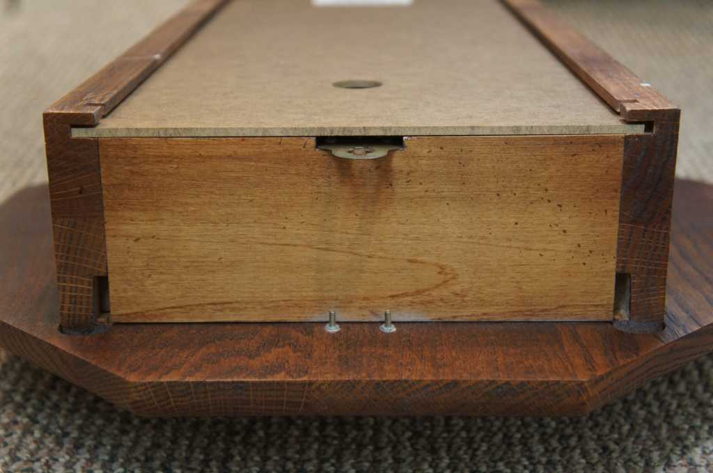 The clock came from a former employee of DAP products a manufacturing company founded in 1957. There's a beass plaque along the center with their logo that can be removed.