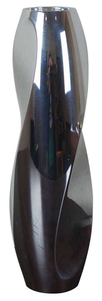 Nambe Fred Bould Vase #6234. Made from a heavy metal with a twisted shape