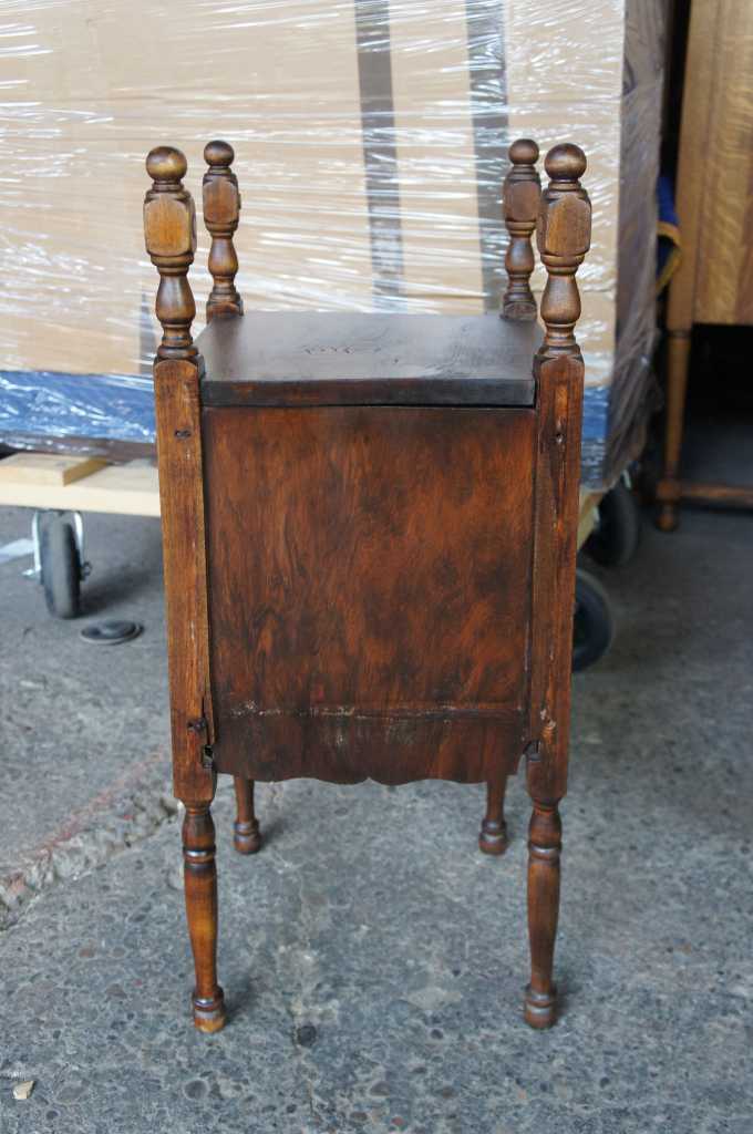 Early 20th century smoke stand. Made from walnut with turned and fluted posts. Tin lined.