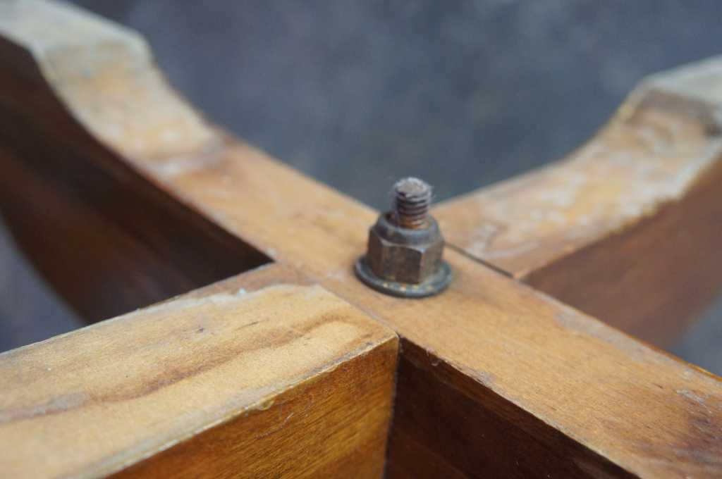 Colonial Revival coat rack. Made from pine with 4 brass hooks and an acorn finial.