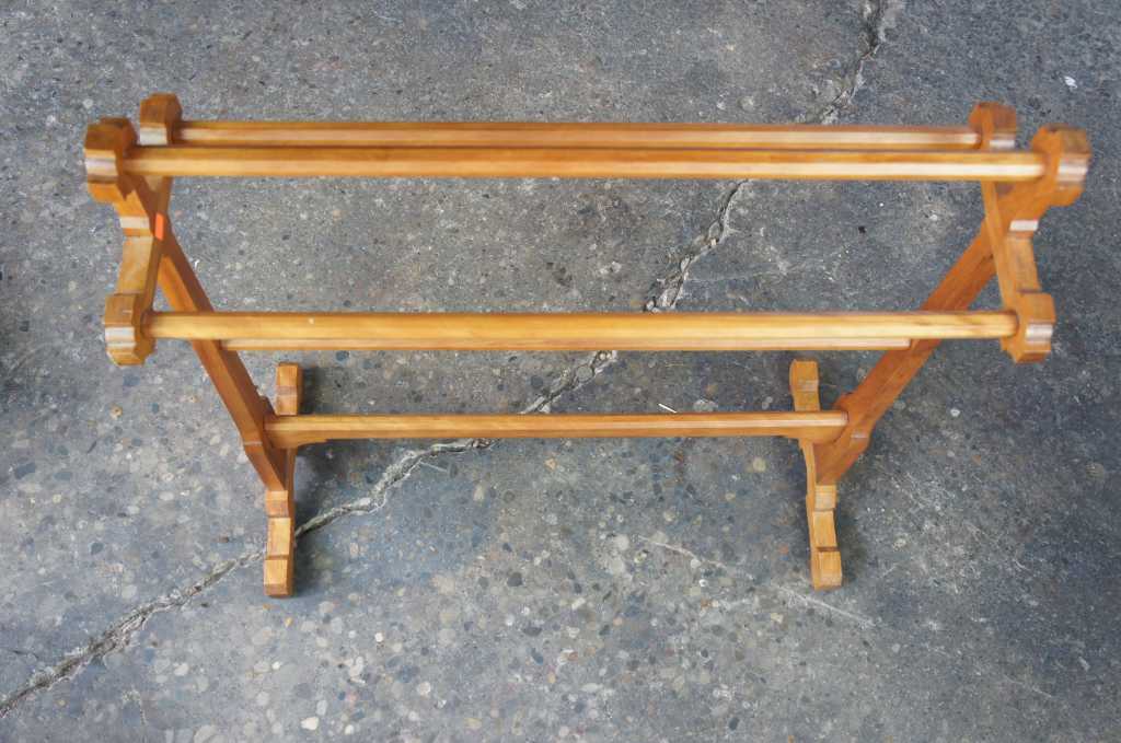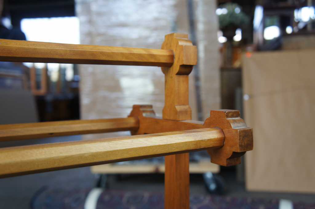 Up for consideration is an american maple quilt, towel or blanket rack. Handcrafted with a budded cross shape along the sides. Includes 4 rods for hanging.