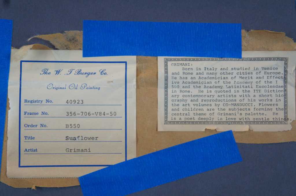 Oil on canvas by Beppe Grimani. Beppi lived from 1911 to 1998. Lived in Italy and studied in Venice and Rome. Bio on back of piece.