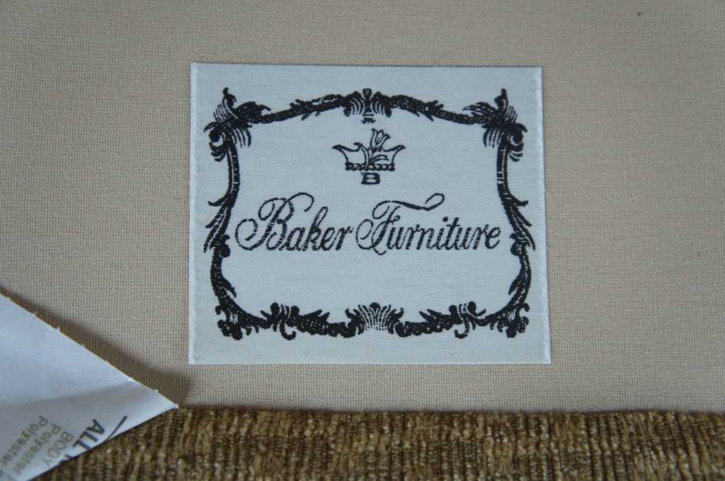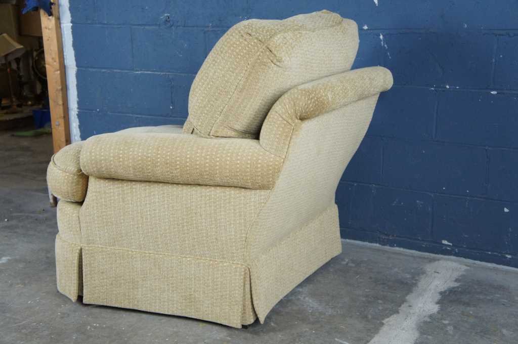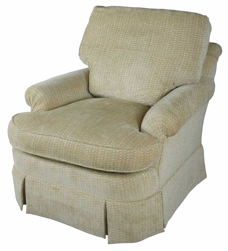 Traditional Baker Club Chair. Beige upholstered with rolled arms cushioned seat and pillowed back. A nice addition to any sitting area.