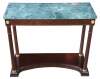 A stunning neoclassical inspired console table by Bombay Company. Made from Mahogany with a green marble top and brass accents. Circa 1989.