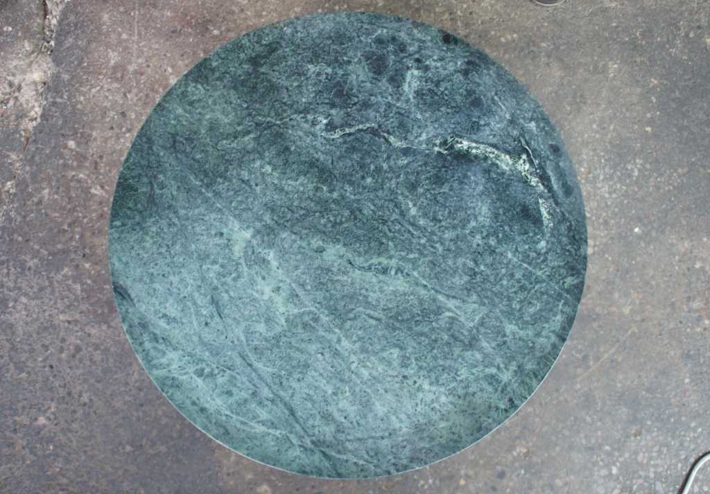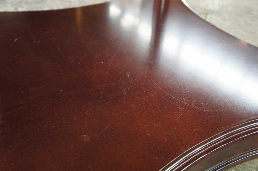 Neoclassical inspired coffee table by Bombay Company. Made from Mahogany with a green marble top and brass accents. Circa 1989.