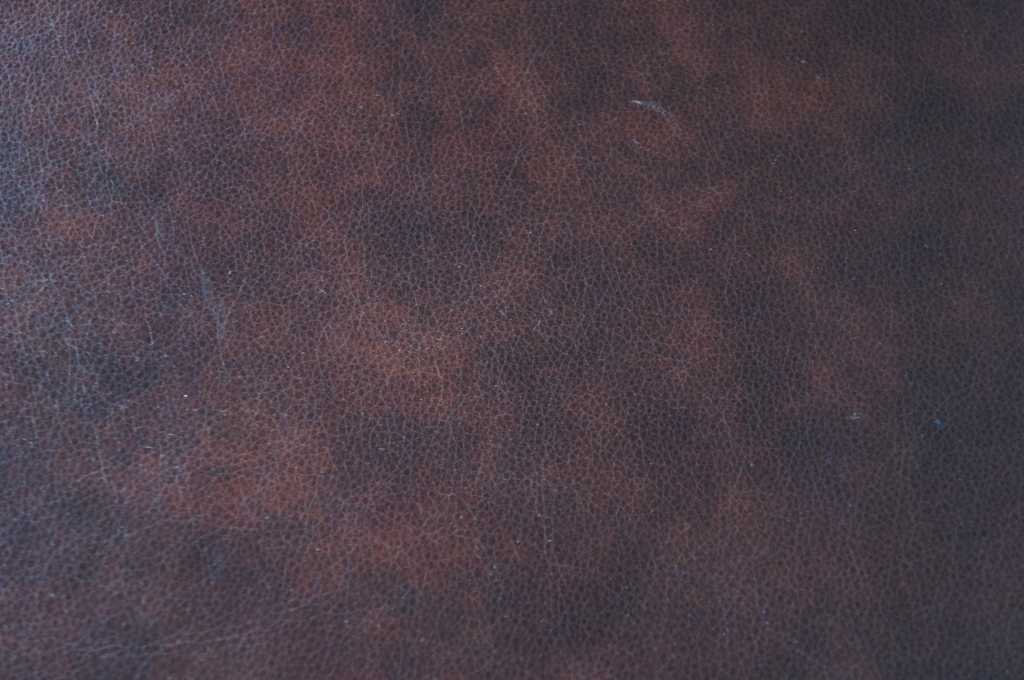 An antiqued and physically distressed finish that has a rich patina and burnishing effect on the edges.