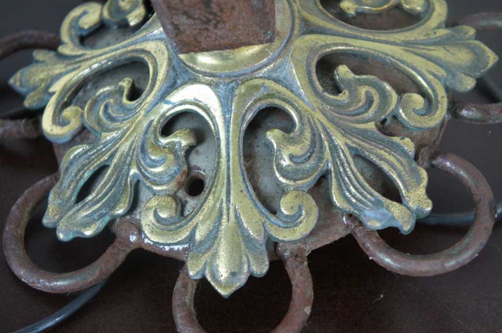 A stunning pair of Moorish Moroccan style wall sconces. Made from iron with a pierced brass downward hanging lantern. The perfect statement for any space