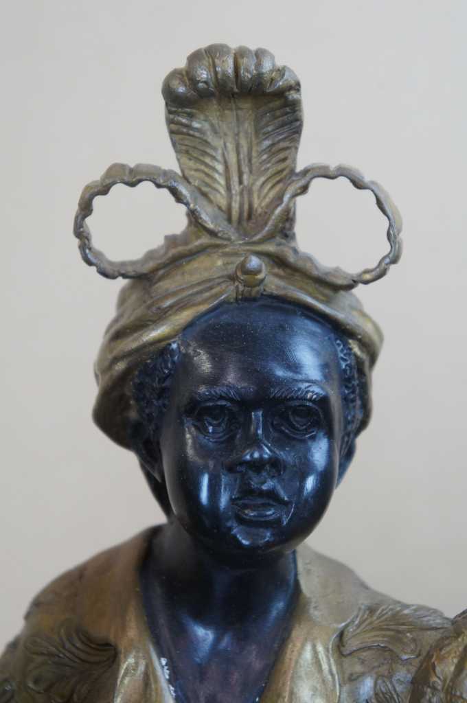Gilt Bronze Nubian figures in Baroque attire holding torch (torchiere).