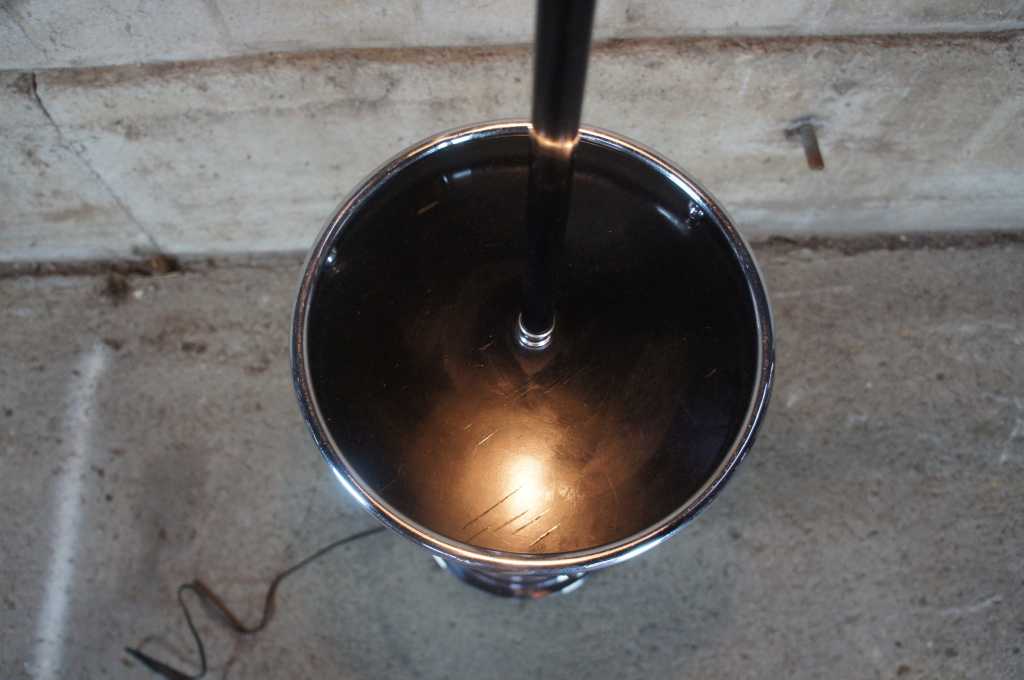 Art deco floor lamp with slag glass cylider top and table.