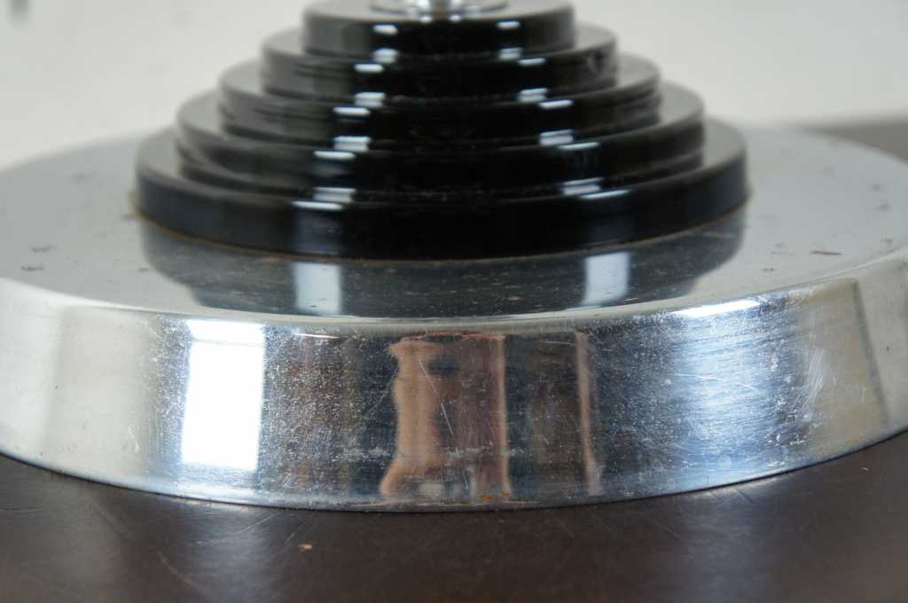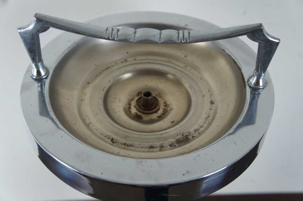 Late Art Deco Smoke stand. Chrome with black and clear glass sections.