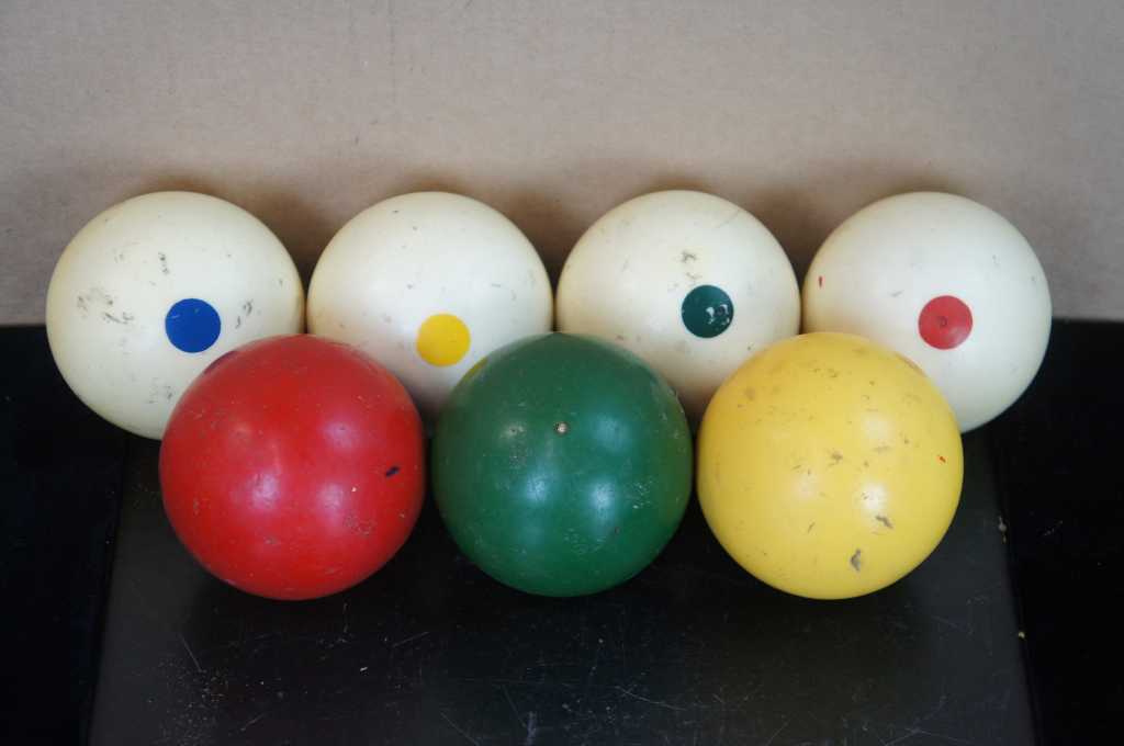 Vintage Lawn Billiards Croquet Set w Original Box Mallets Outdoor Pool Table Toy
