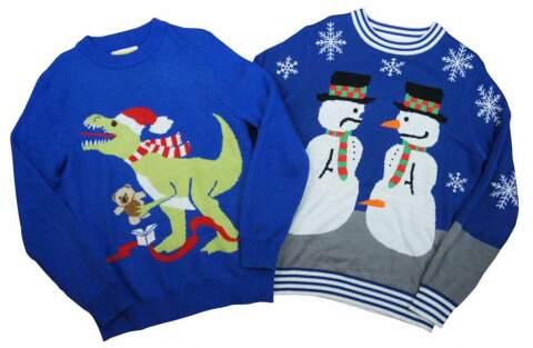 2 Tipsy Elves Blue Mens Lg Ugly Christmas Sweaters T-Rex Snowmen Naughty & Nice Lot