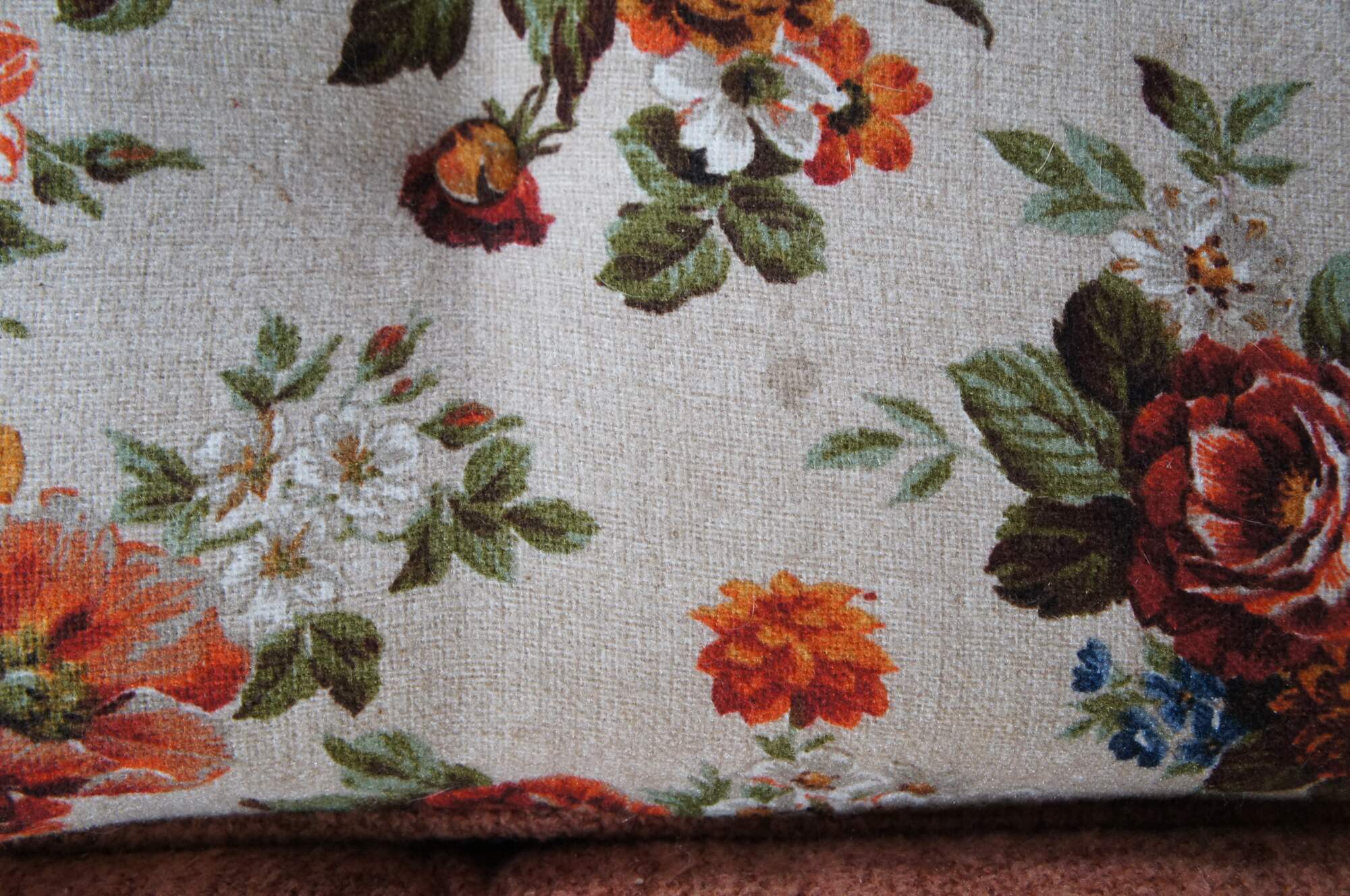 Adrian Pealsall mid century modern / atomic era sofa or couch featuring traditional gondola form with the original peach and tufted floral fabric.