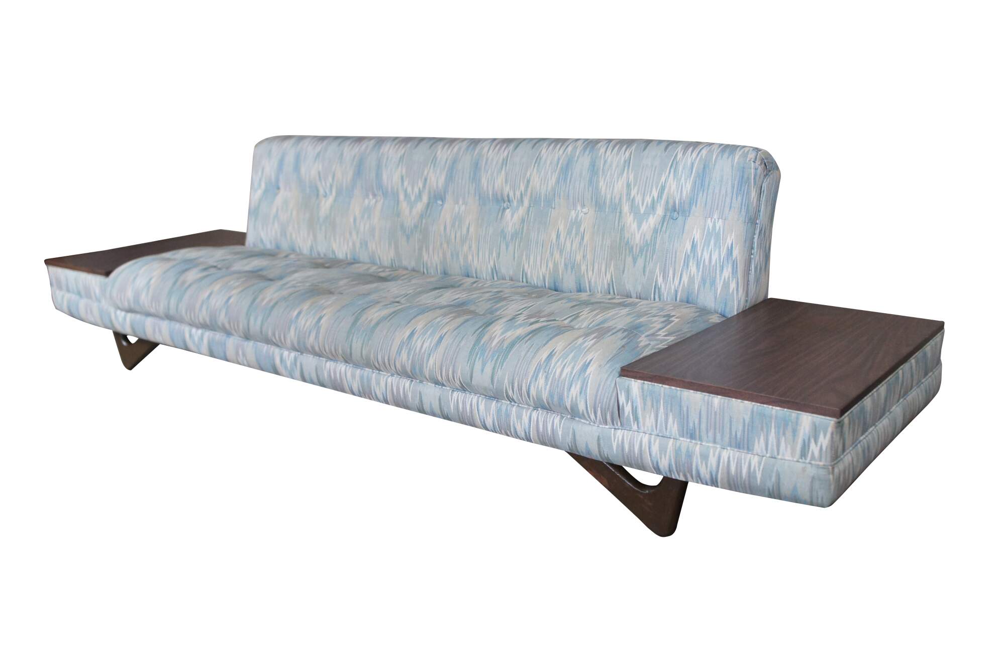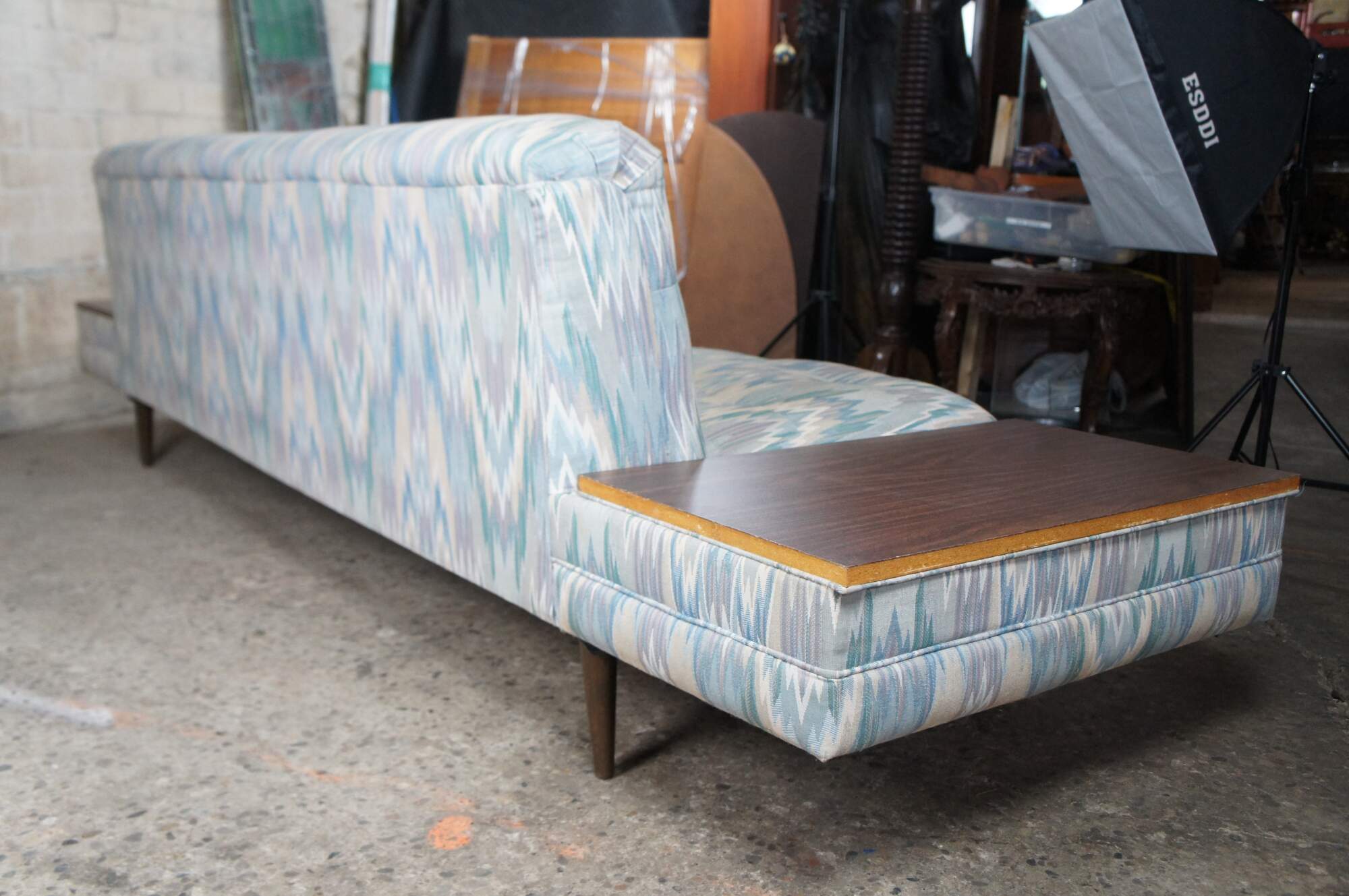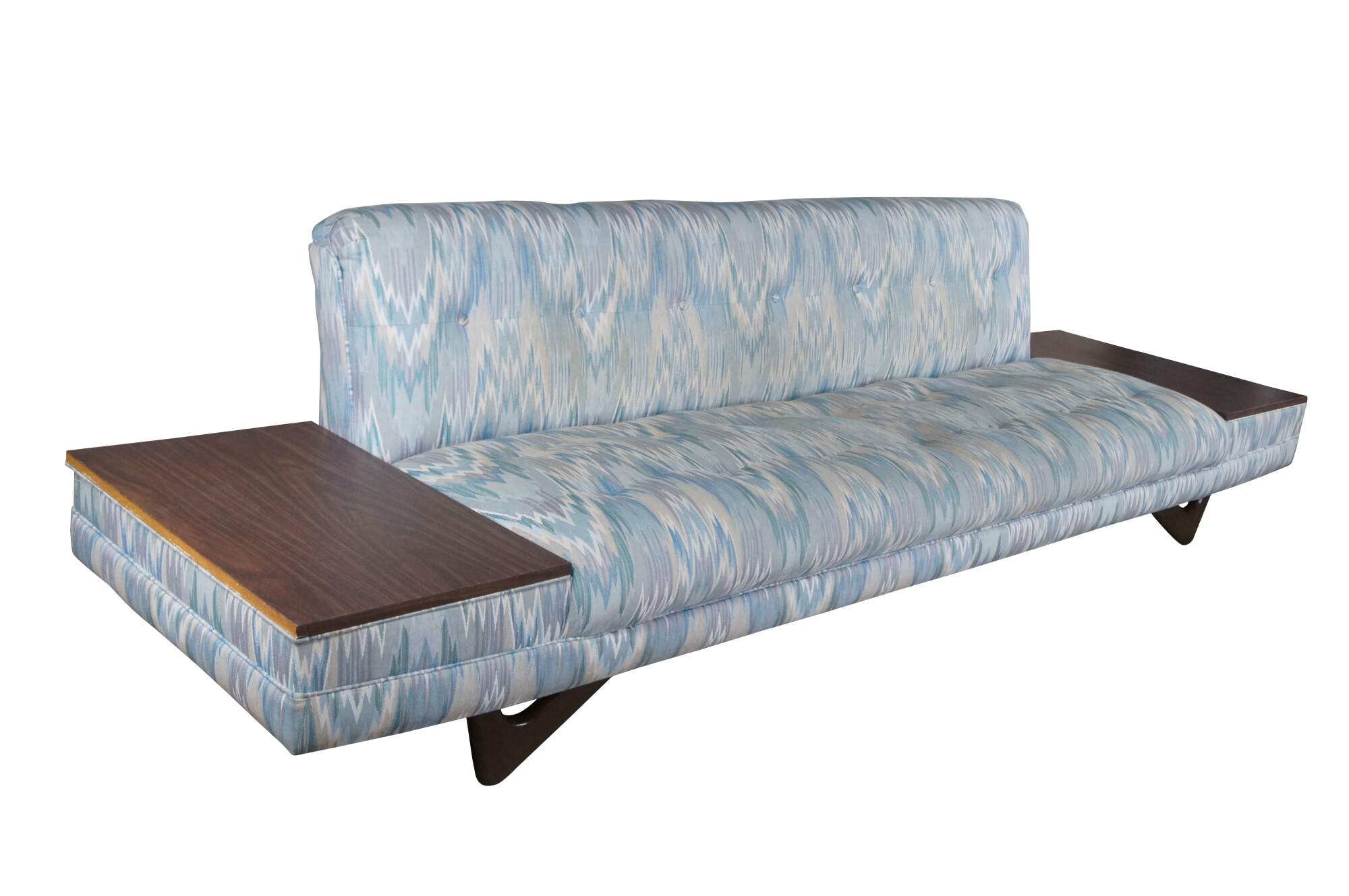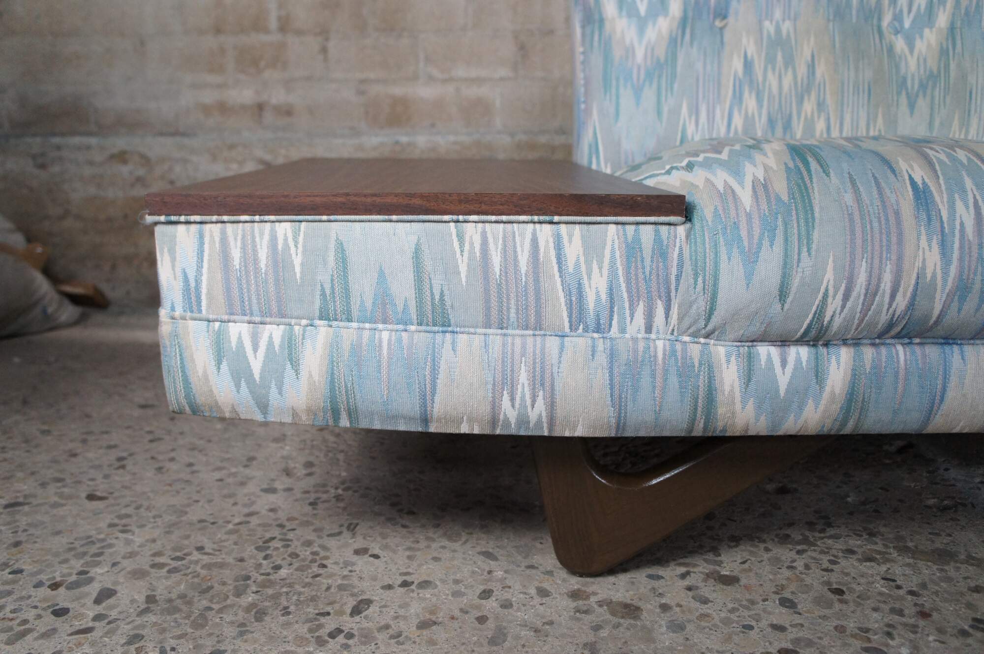 Adrian Pearsall mid century modern / atomic era floating platform sofa or couch featuring the original flame stitch fabric with walnut Formica end tables and boomerang legs.
