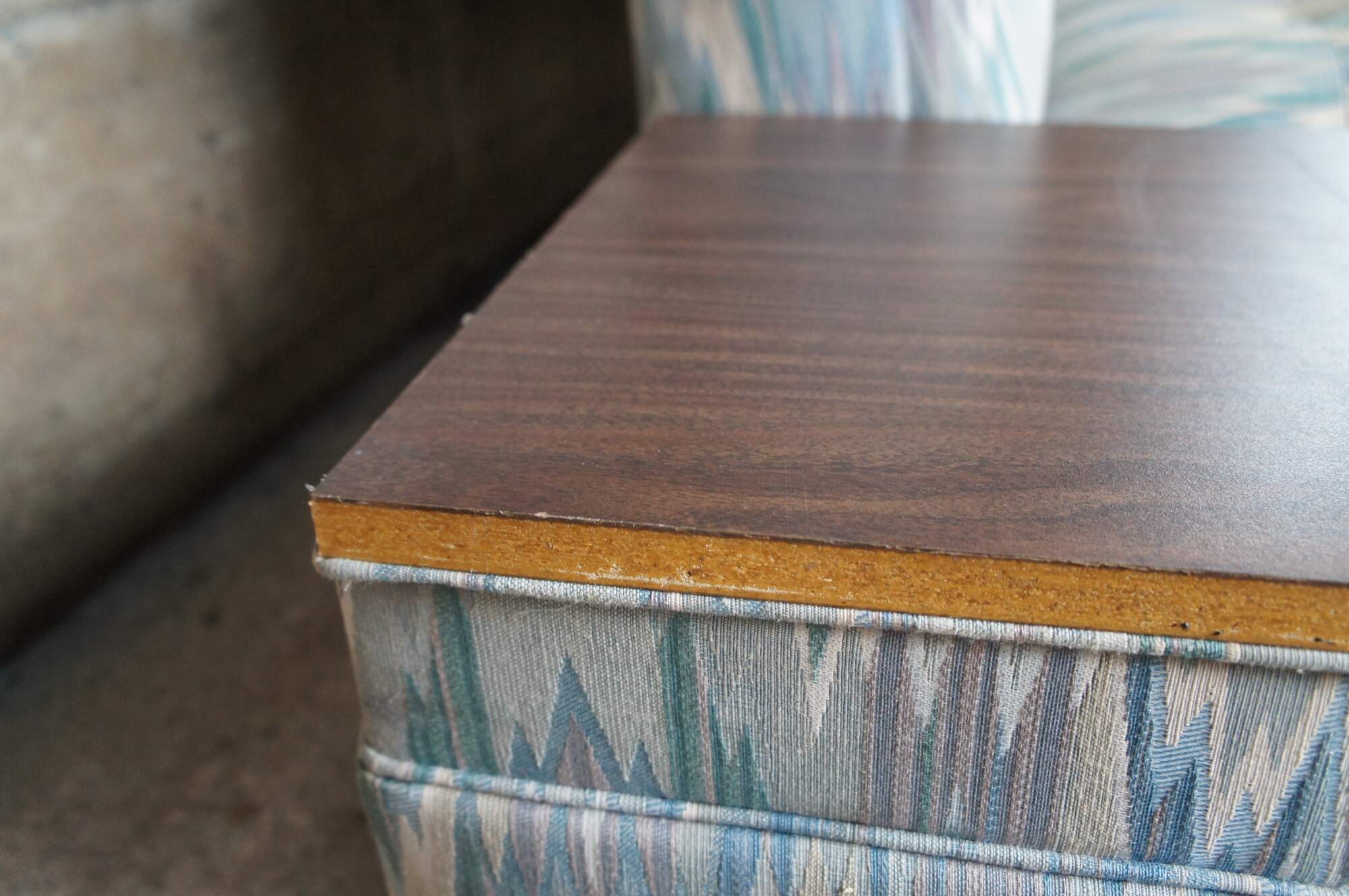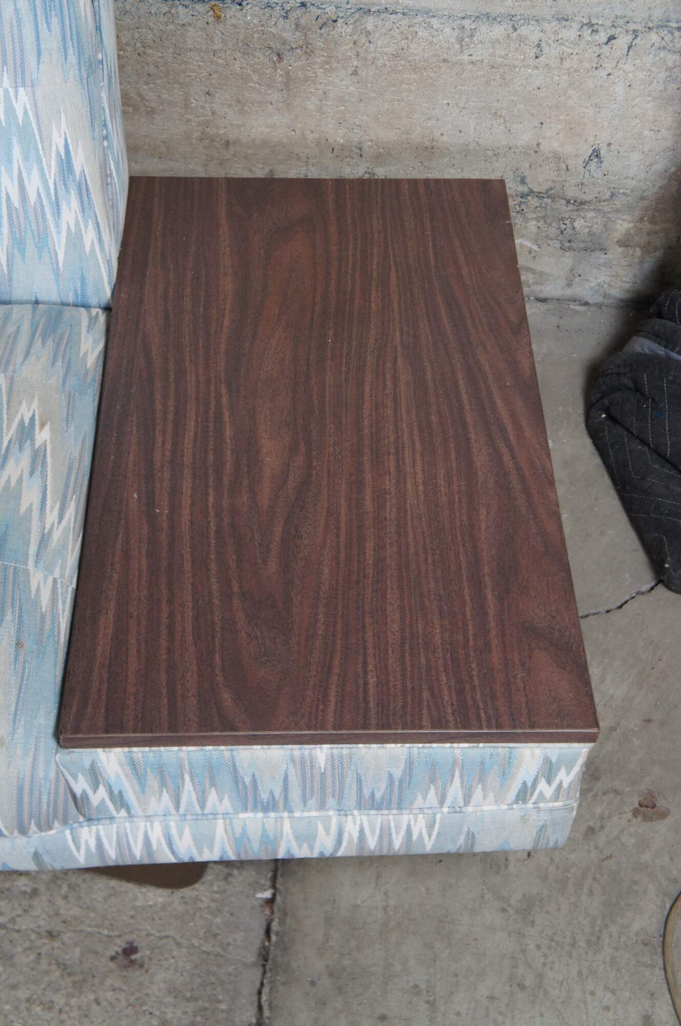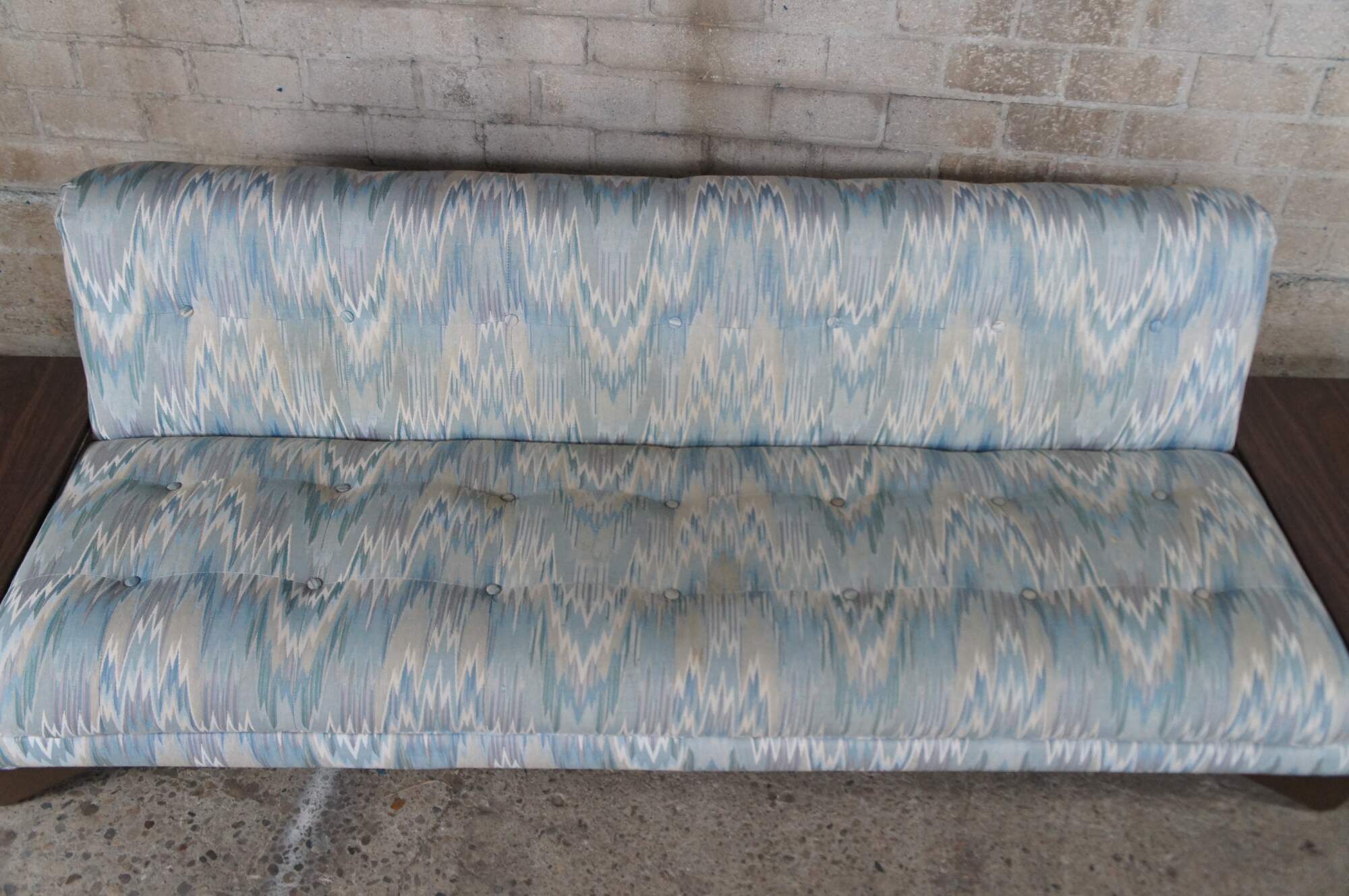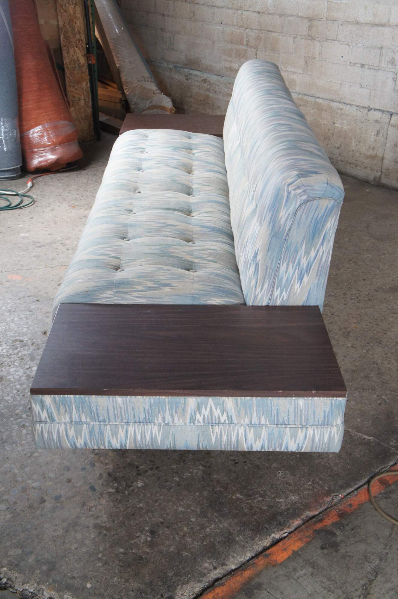 Adrian Pearsall mid century modern / atomic era floating platform sofa or couch featuring the original flame stitch fabric with walnut Formica end tables and boomerang legs.