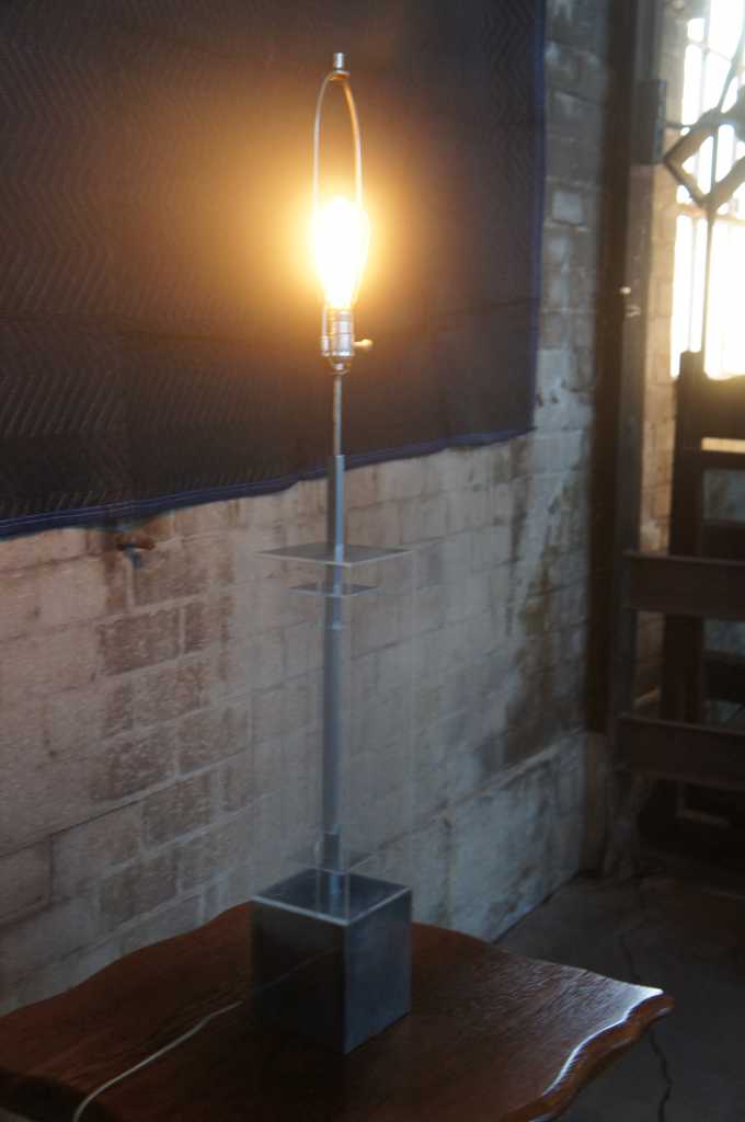 Karl Springer inspired stacked lucite geometric table lamp.