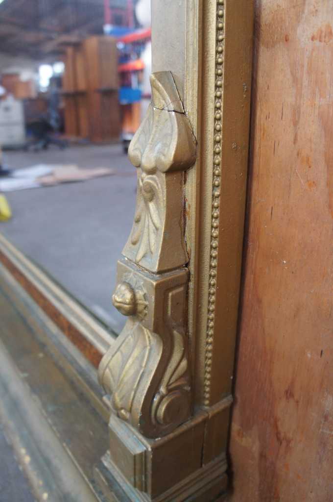 Good antique condition, paint loss, splitting, past repairs, right pilistar was reattached, left top molding slightly uneven, holes in top of frame from being mounted to a wall. Holes can be filled and support leveled before shipping if interested.