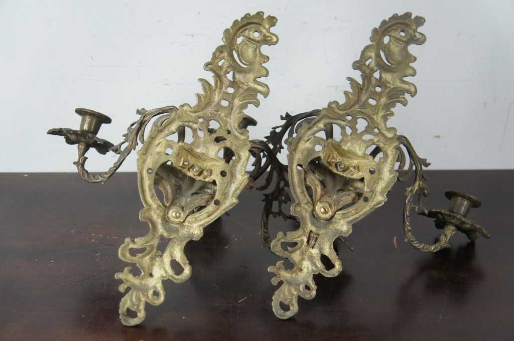 Pair of cast iron french 3 candle sconces.
