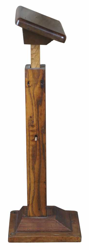 Diminutive early 20th century lectern or podium. Made from oak with a slanted top surface and adjustable height. Given its stature it appears to have been mounted to a surface for use.