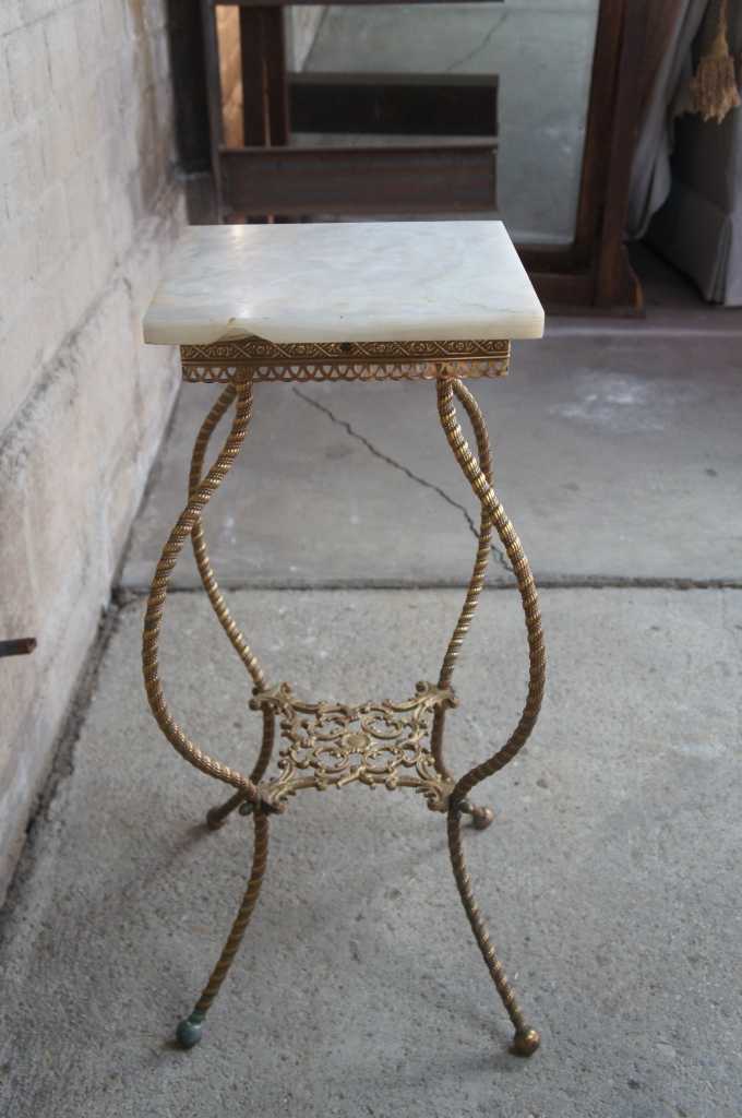 Late Victorian brass and onyx fern table or lamp stand. Features a pierced apron, swooping legs and filigree shelf.