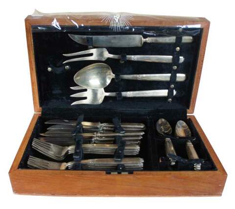 Box – 13.5” x 8” x 3.25” / Carving Knife – 9.75” x 1” / Carving Fork – 9.75” x 1.125” / Serving Spoon – 9.25” x 2.25” x / Serving Fork – 9” x 2” / 8 Teaspoons – 6” x 1.125” / 8 Dinner Forks – 7.5” x 1.125” / 8 Dinner Knives – 8” x 0.75” (Length x Width x Height)
