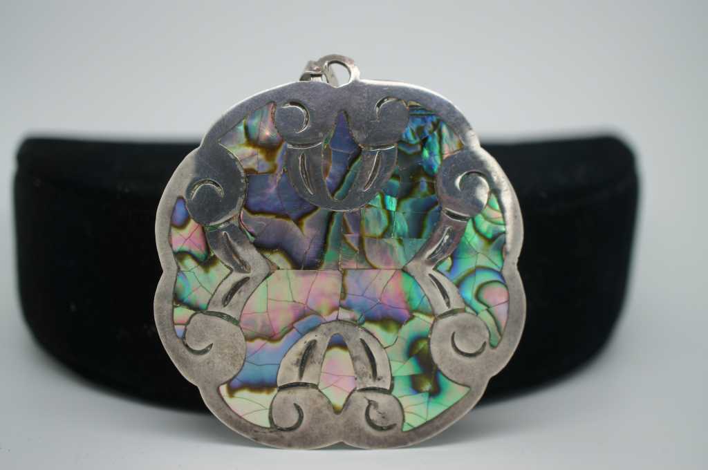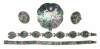 Pendant/Brooch – 2.25” - 16.4g / Earrings – 1” - 4.3g / Bracelet 1 – 7” x 0.5” - 9.6g / Bracelet 2 – 6.75” x 0.5” - 11.1g (Diameter/Length x Width/Weight)