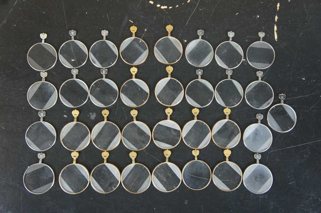 American Optical Company Wellsworth Products Optometrist Exam Case. Contents: Wood Case w/ Keys; 2 Eye Paddles; 2 Rulers; Four Lens Flipper; Oculus Trial Lens Frame; 204 Total Test Lenses. Missing Lens Sizes (Based on Labeled Slots): Spherical Concave 0.62 (both), 1.25, 3, 4, 6, 12 / Spherical Convex 0.25, 0.75, 1.25 (both), 2, 2.5, 3.5, 4, 4.5, 16 / Cylindrical Concave 0.37, 0.75 (both) / Triangular 3, 8. Extra Lenses: Spherical Concave 9, 13 / Spherical Convex 0.37, 0.5, 1, 11, 13, 14 / Triangular 1, 4, 10.