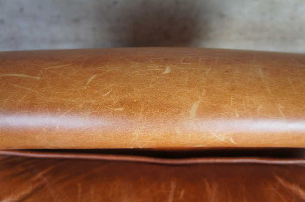 Imperfections are the result of aging, some distressing to the leather, patina to brass nail heads, blemish to seat