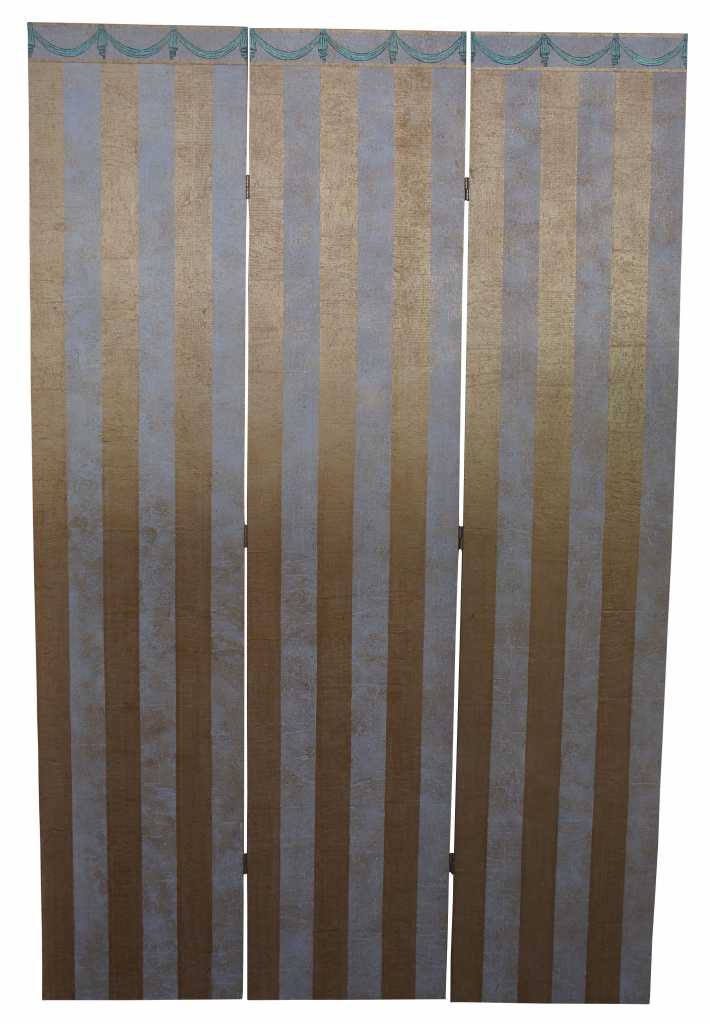 Neoclassical or French inspired room divider. Gold and white with two way folding hinges.