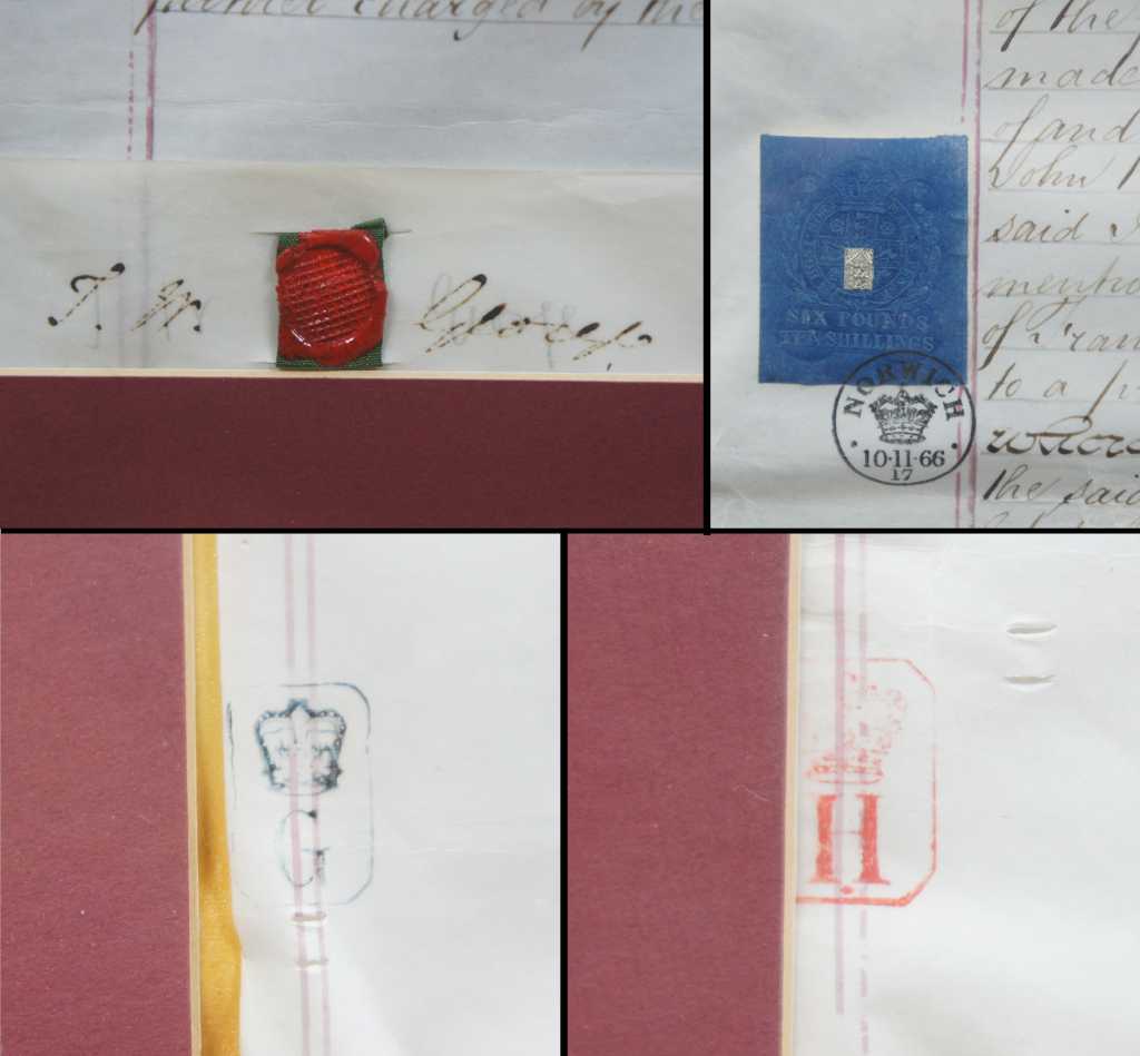 1860s European Land Indentures. Each is neatly framed with mat allowing them to be seen through both sides. These items came from a local attorney who recently retired.