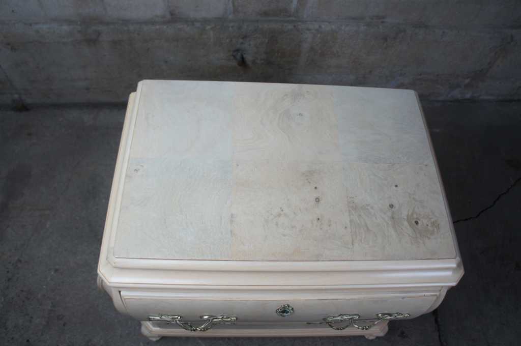 Henredon bombe nightstands. Feature a whitewashed finish with serpentine base and cabriole legs.