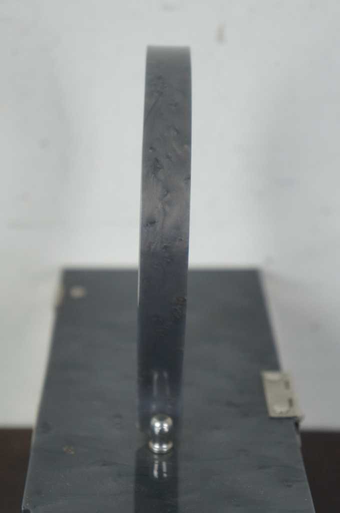 Gray Bakelite Purse. Features a tortoise deisgn with silver framing.