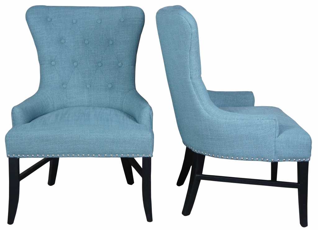 The transitional style of the Blue Claybourne Dining Chairs by Arhaus brings a classic charm to any dining space. Expertly upholstered in designer-inspired neutral fabrics, these chairs’ large silhouettes feature graceful curves accentuated by hand-tufted detailing and nailheads. Sumptuous seats are supported by generous padding and a no-sag spring systems that provide firm yet flexible comfort for hours.