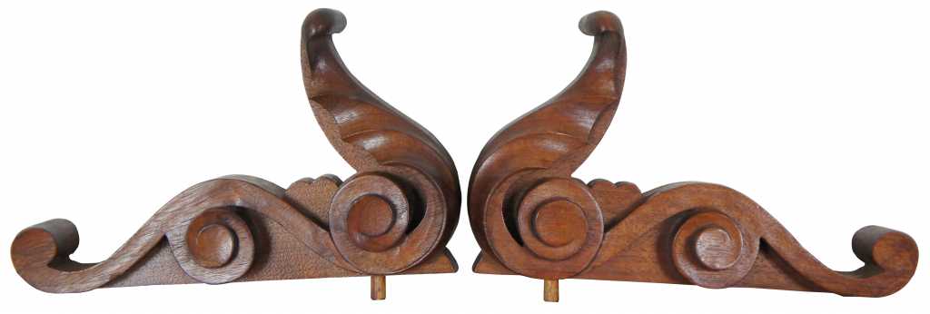 Three late 19th century carved walnut trim piece salvage brackets. Made for backsplashes or other casegoods from the Victorian era.