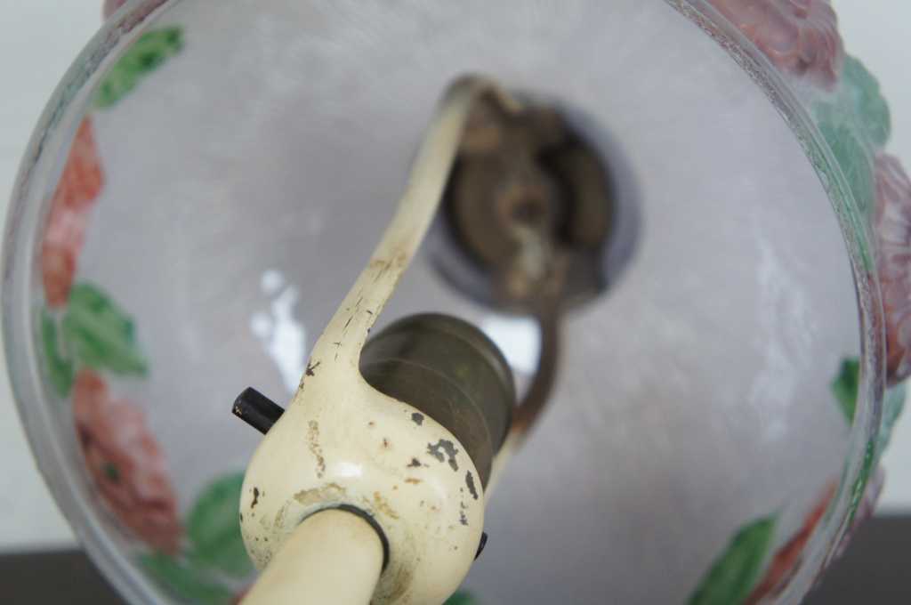 Circa 1930s Aladdin Table Lamp with floral decorated mushroom shade.