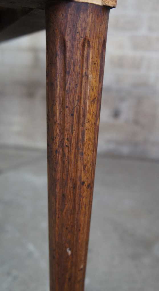 Very Good – original leather has been painted, missing molding on corners, distressing, patinia on legs and handles; see pictures