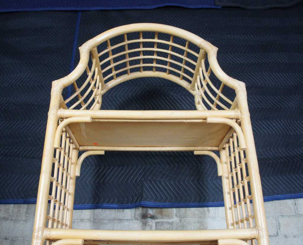 A fun bamboo bookcase, features four bamboo shelves, arched pagoda shaped top.