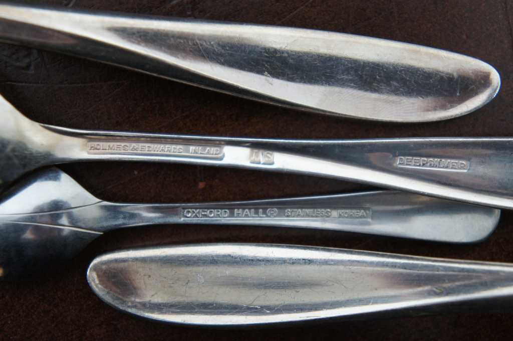 1970s vintage Oxford Hall & Holmes Edwards assorted stainless flatware lot. Sagamore Jamestown, Old Bradbury Pattern.