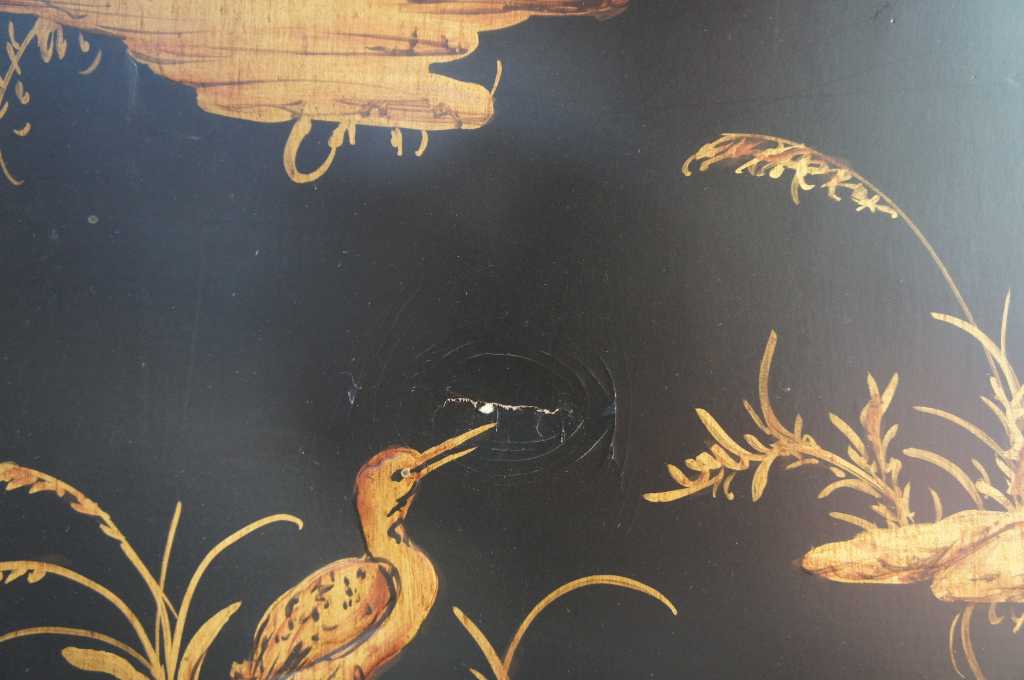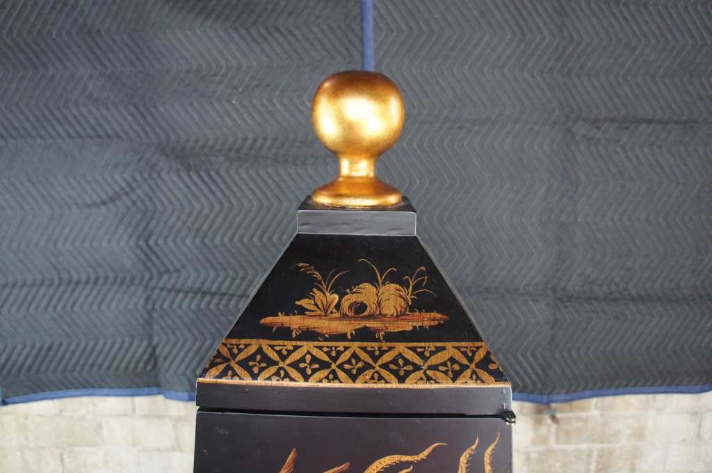 Pyramid or obelisk shaped bookcase cabinet. Features a black laquor case with raised asian design over marbled base.