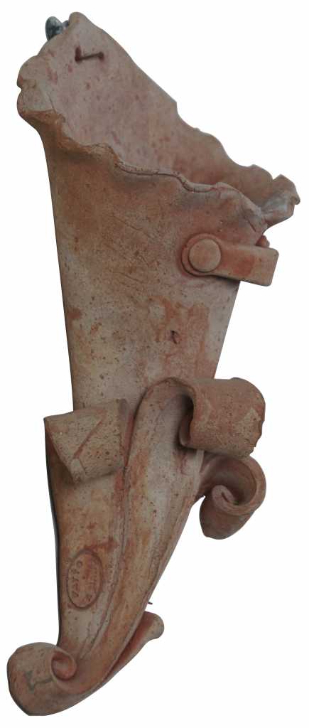 Fatto A Mano or hand made in Italy wall pocket. Made of terrecotta in the shape of a cornucopia.