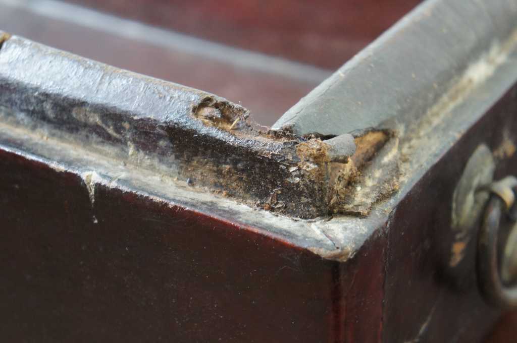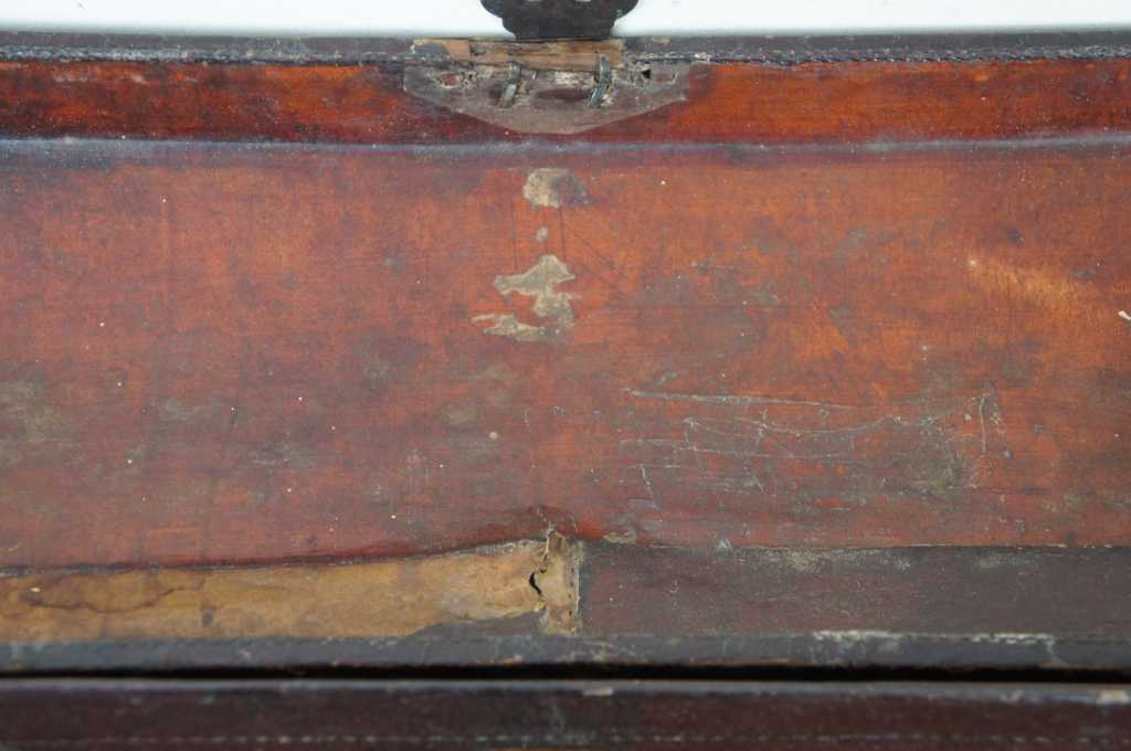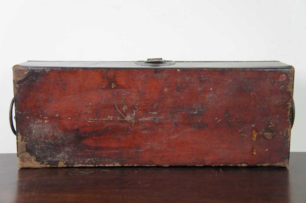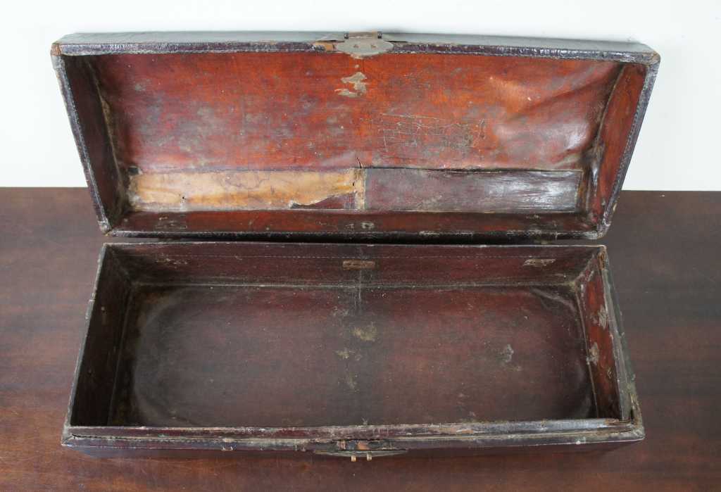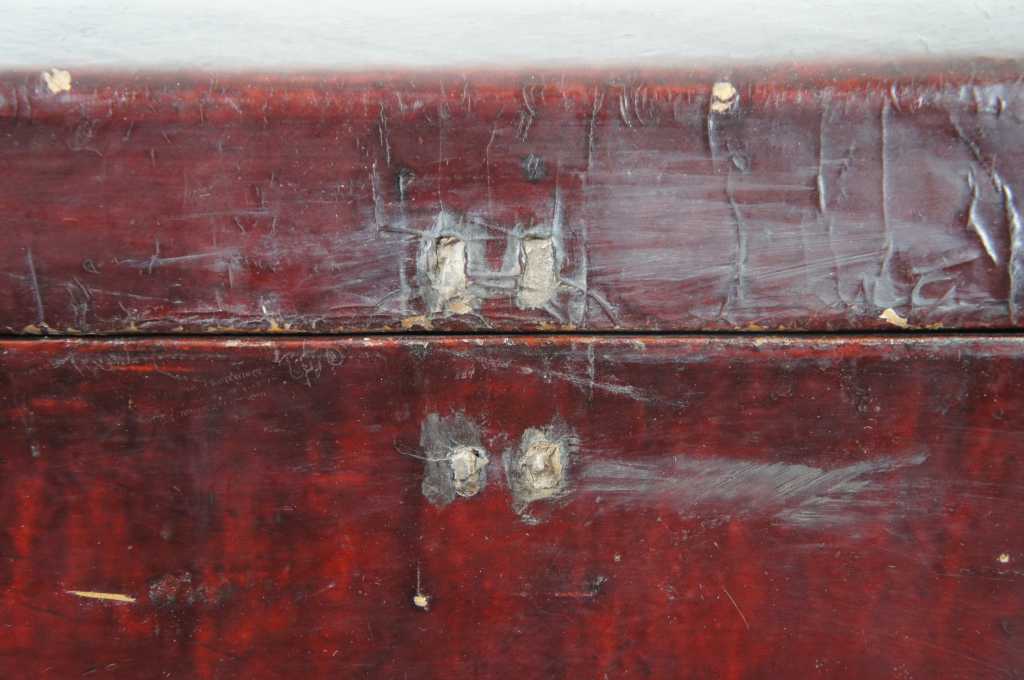 Handmade Antique Chinese Leather Scroll Box Trunk Chest Lacquer Handled Domed